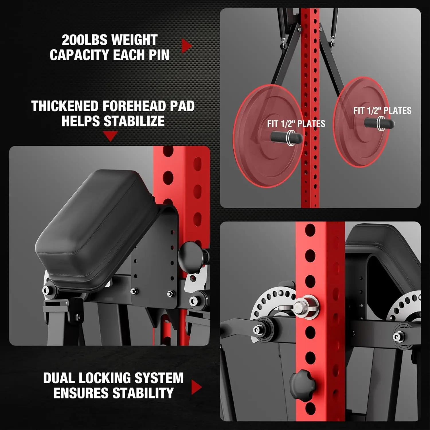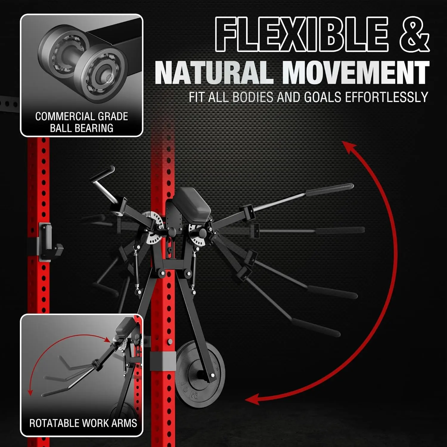 Equipped with commercial-grade rotating bearings for smooth motion, adapting to various heights, arm lengths, and training goals. A thick head pad enhances stability, while reinforced 11-gauge steel beams and non-slip coated handles ensure durability and safety during intense workouts. Easy installation with a dual-lock system for stability. Compact yet robust, ideal for home garages or commercial gyms.
