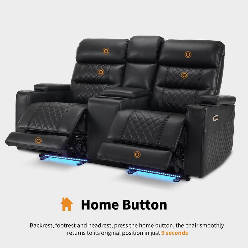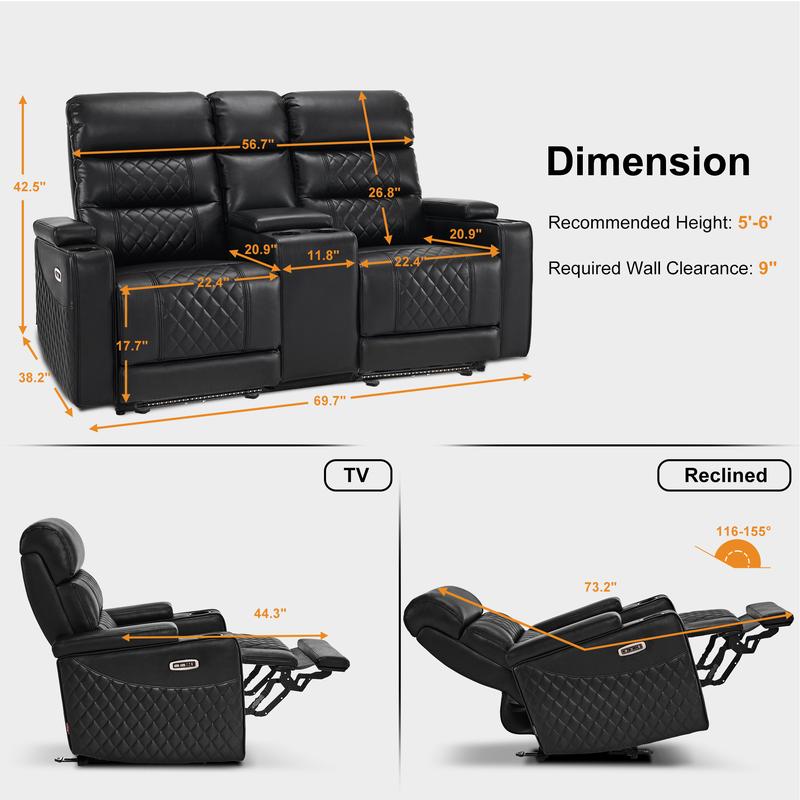 5. Power Reclining Loveseat with Console, Home Theater Seating, Faux leather HTS480