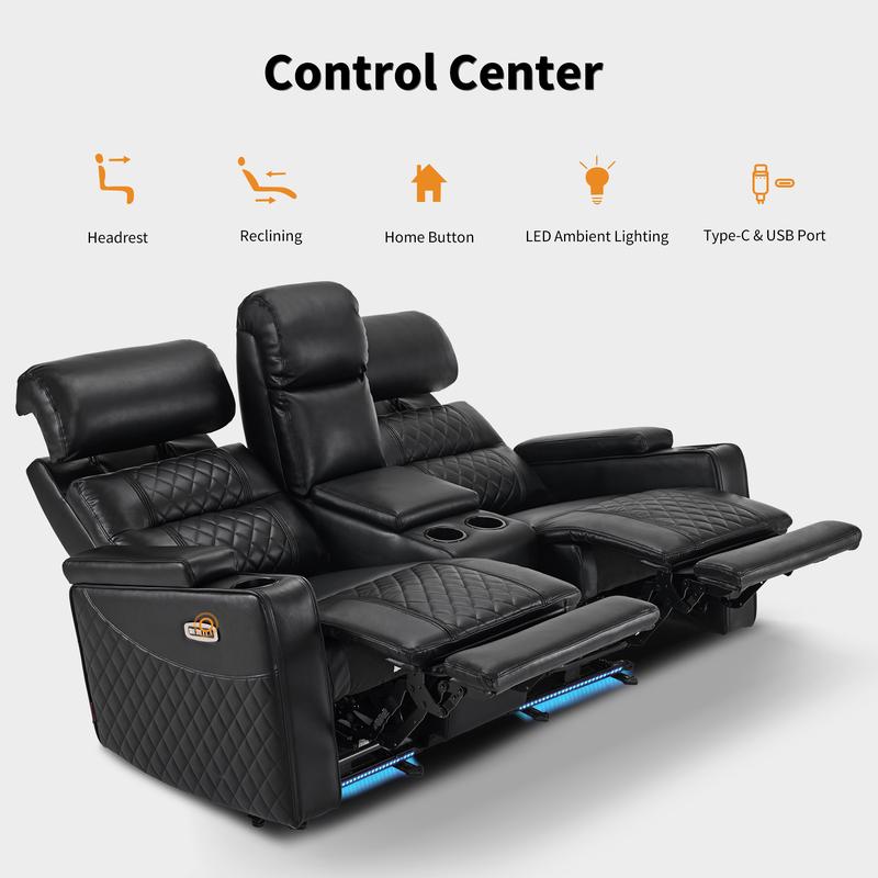 Power Reclining Loveseat with Console, Home Theater Seating, Faux leather HTS480