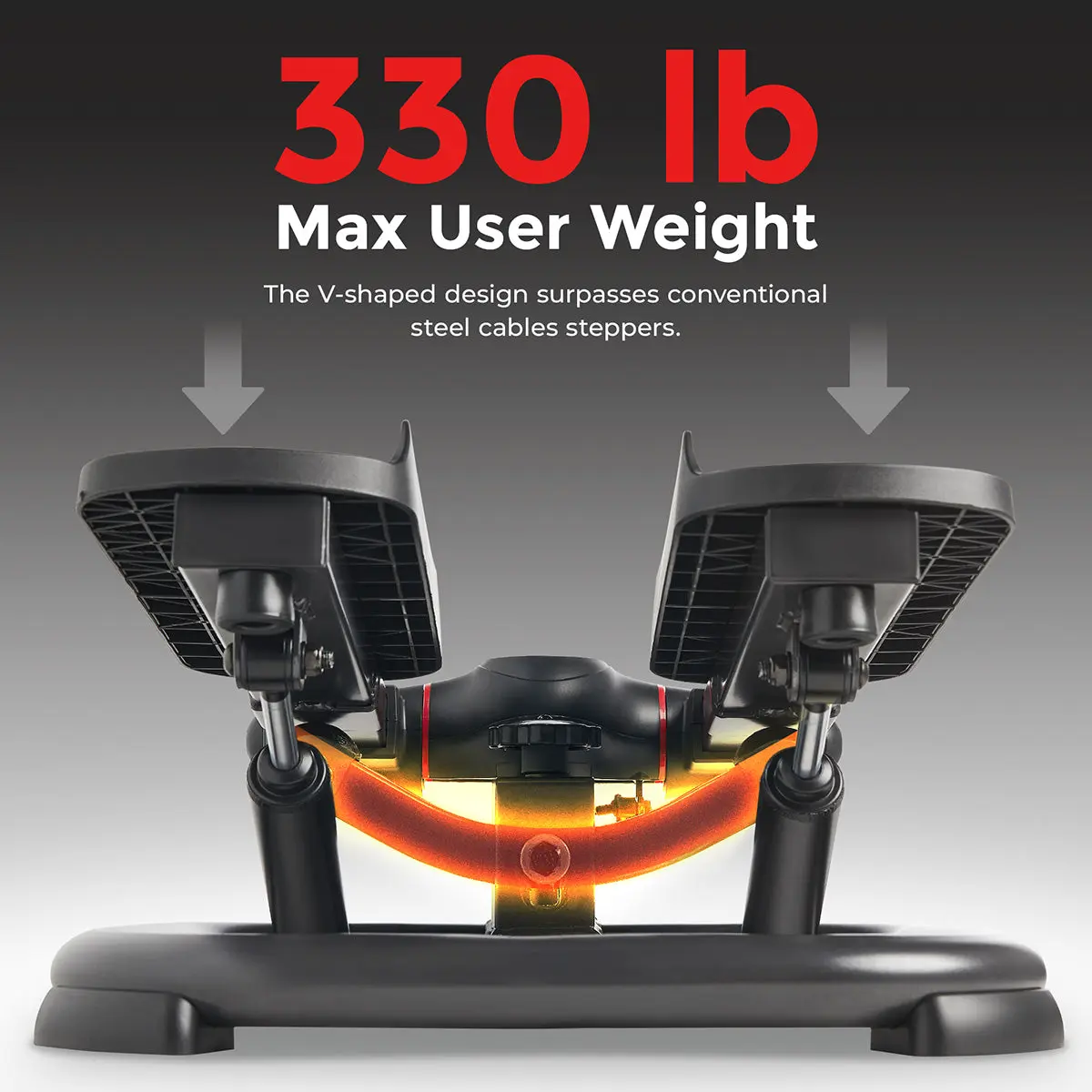 The unique V-shape design provides unmatched stability and enhances the weight capacity up to 330 lbs for users of all fitness levels. The sturdy steel frame ensures durability for intense workouts.