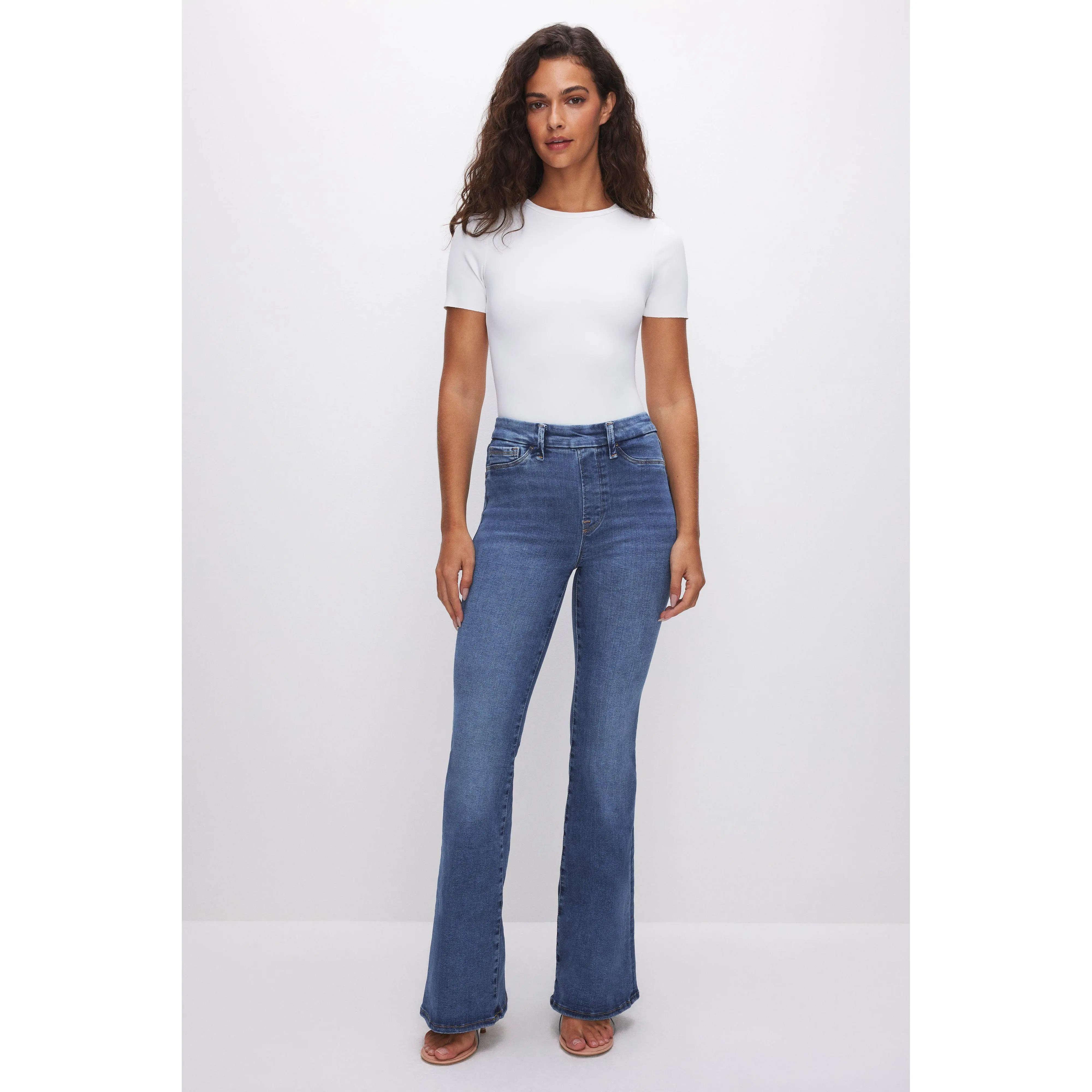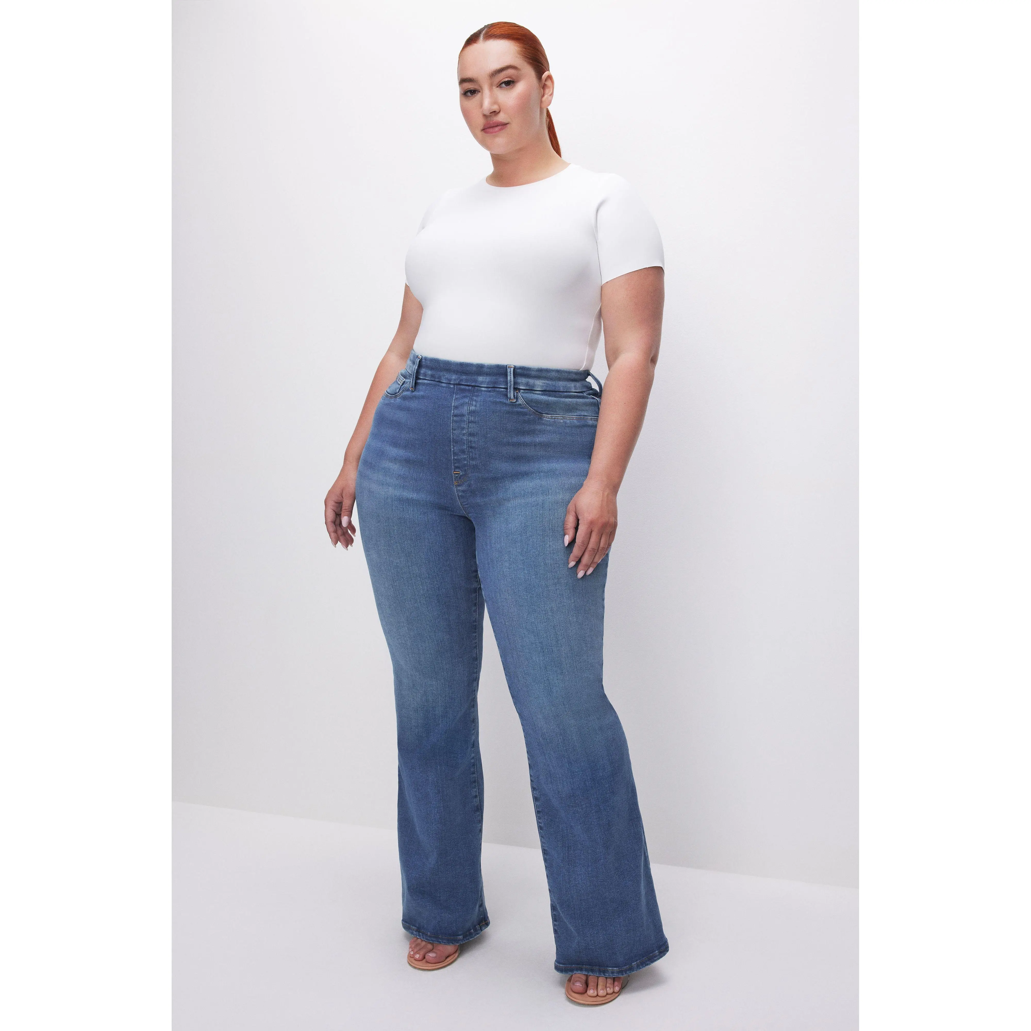 No zipper, no button, no problem – pull them up and head out the door in the sexiest damn pull-on jeans ever made. The Power Stretch Pull-on Flare Jeans are crafted from our innovative denim that features curve-loving stretch and next-level body sculpting.
