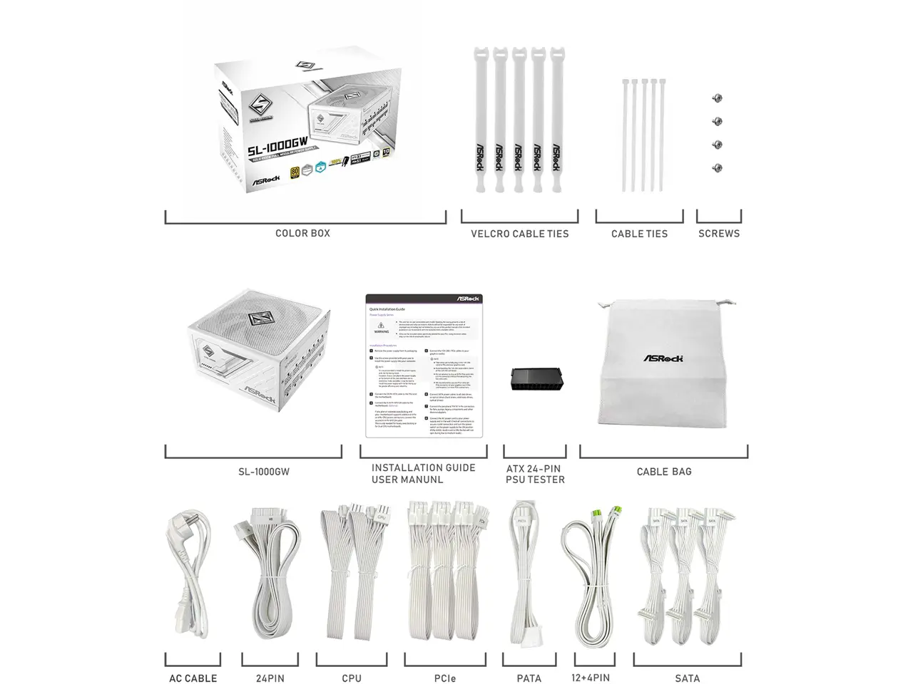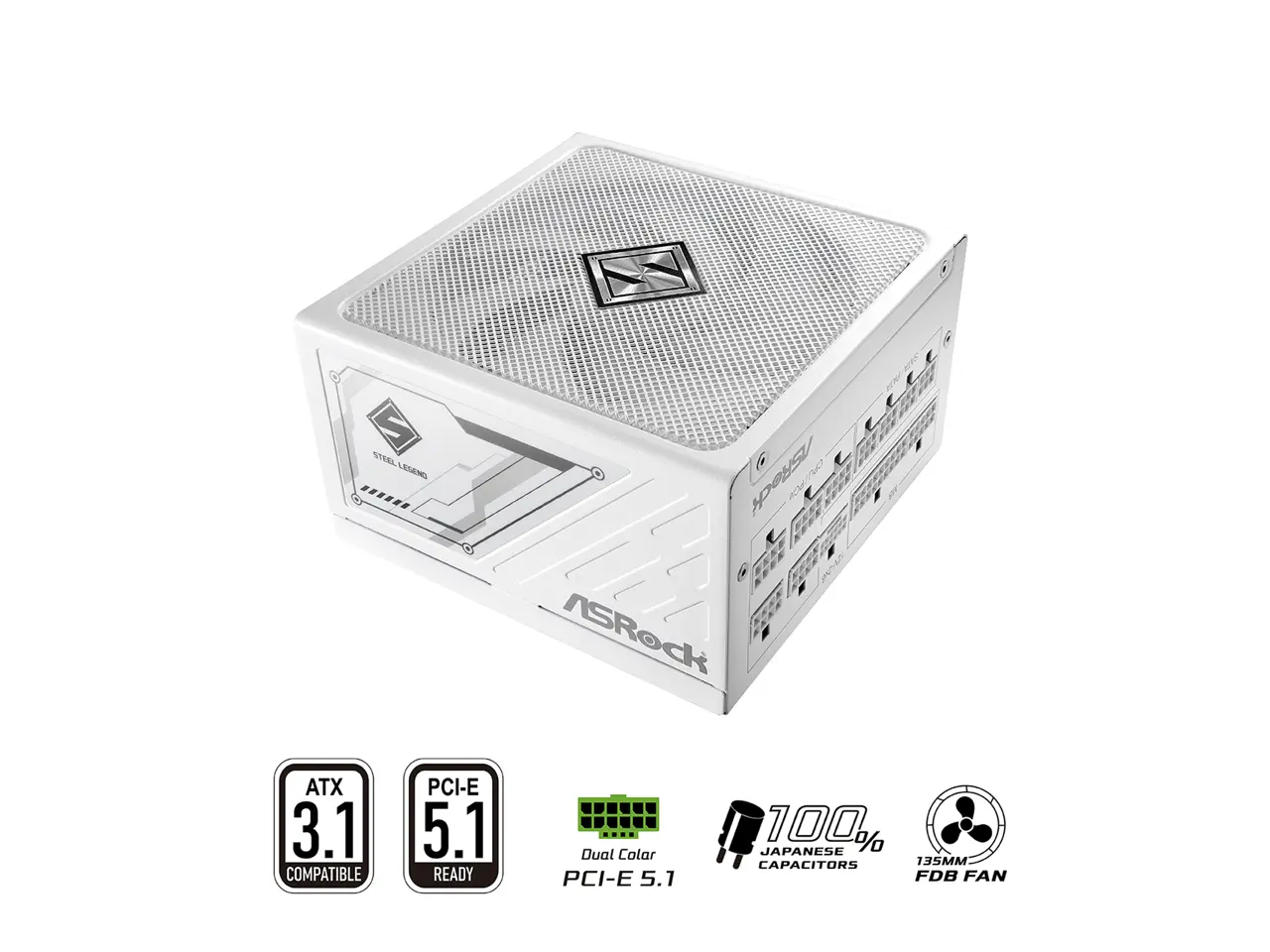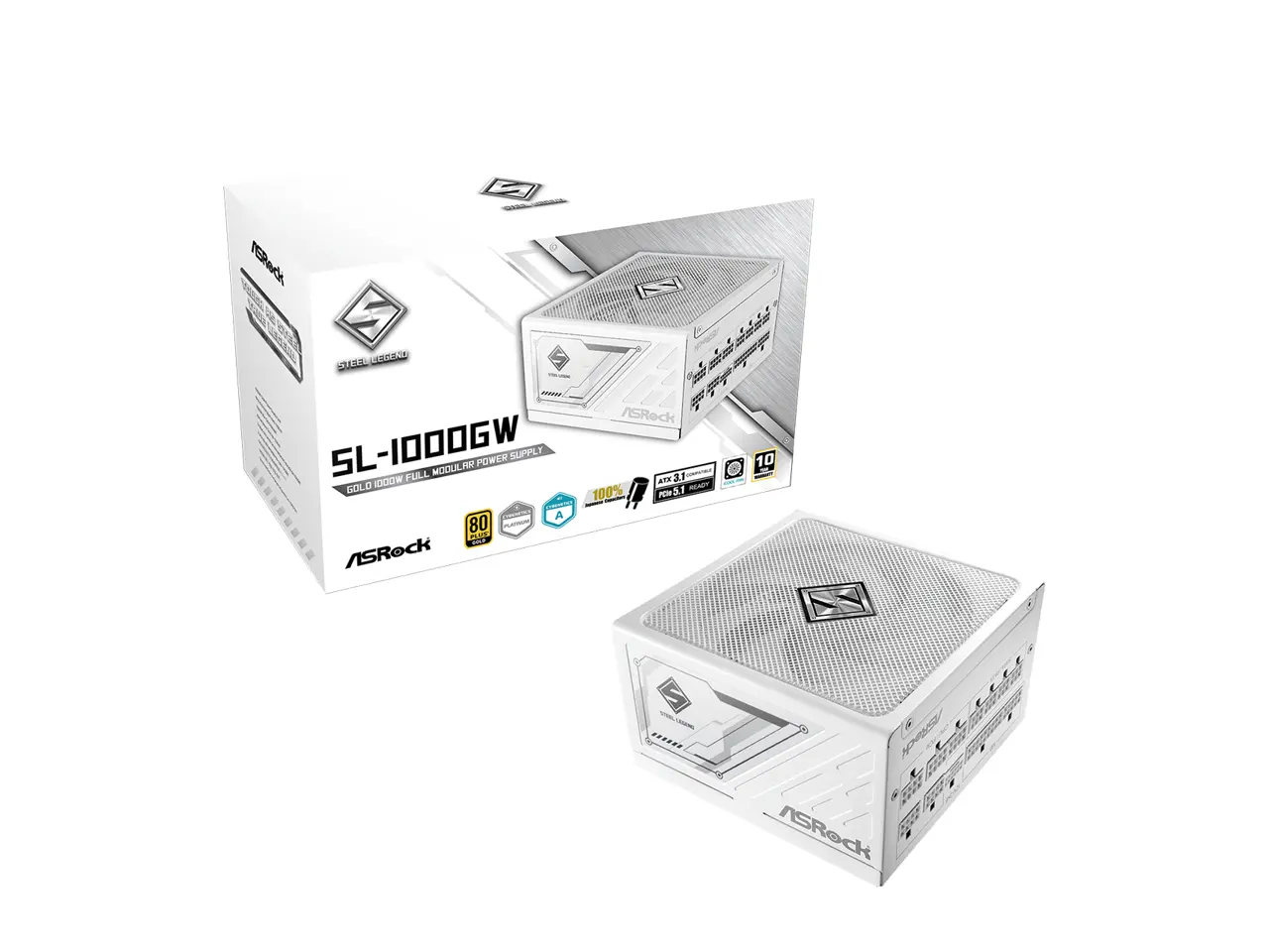 ASRock SL-1000GW 1000W 80 PLUS GOLD & Cybenetics PLATINUM Full Modular Power Supply, ATX3.1 & PCIe5.1 Ready with Dual Color 12V-2x6 Cable, 10 Years Warranty, White Edition