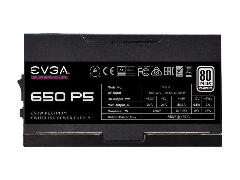 EVGA SuperNOVA 650 P5, 80 Plus Platinum 650W, Fully Modular, Eco Mode with FDB Fan, 10 Year Warranty, Includes Power ON Self Tester, Compact 150mm Size, Power Supply 220-P5-0650-X1