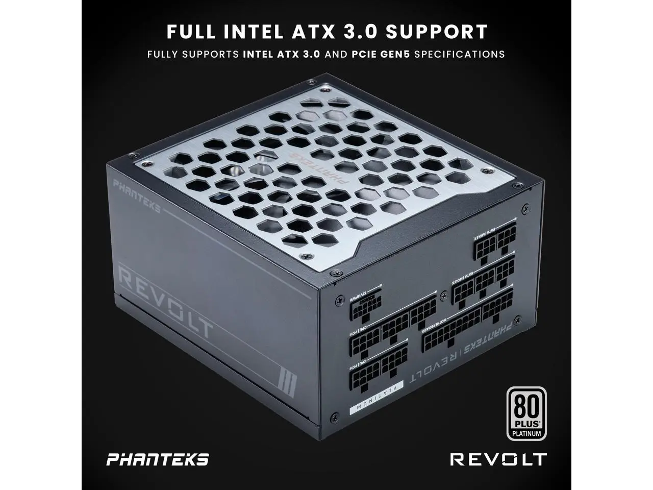 Phanteks Revolt 1200W 80PLUS Platinum, ATX 3.0, PCIe 5.0, Fully Modular, Cable-less, Power Supply Unit Only (cables sold separately), Black