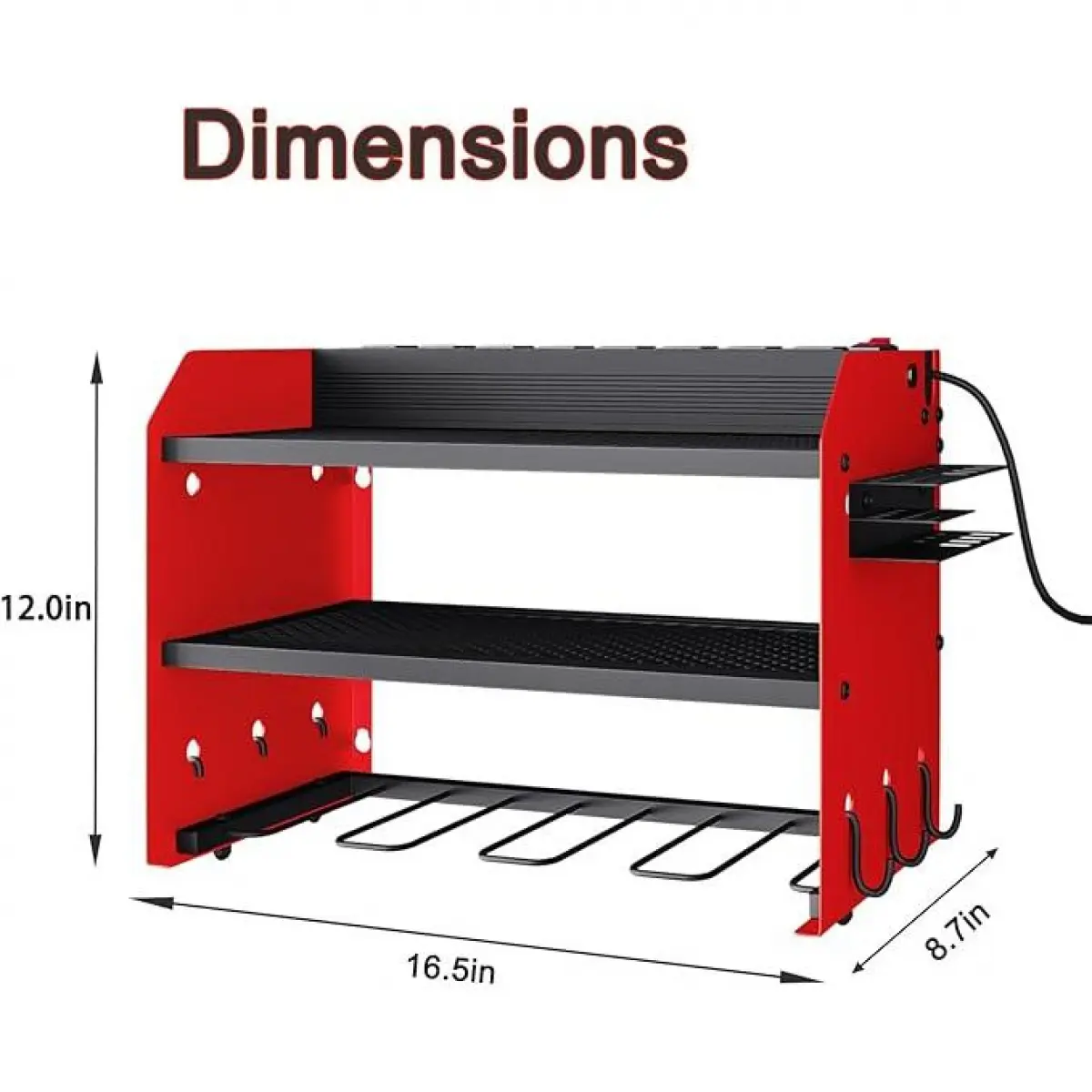 ·Very convenient for charging your tool batteries, All-in-one design and the metal power strip with surge protection of 1200J, Able to protect your device to a certain extent. Utility rack size: L:16.54in * W:8.66in * H:12.01in.