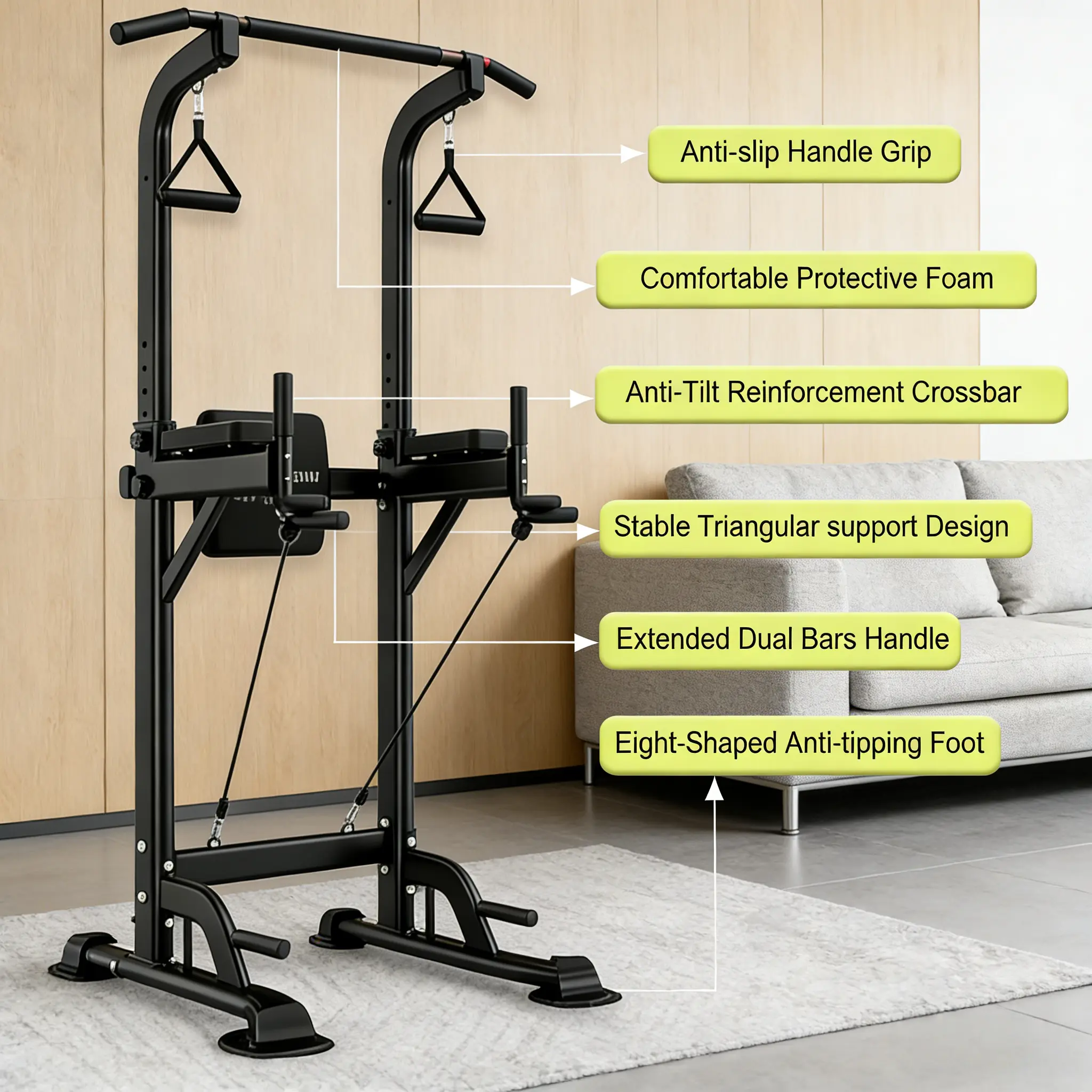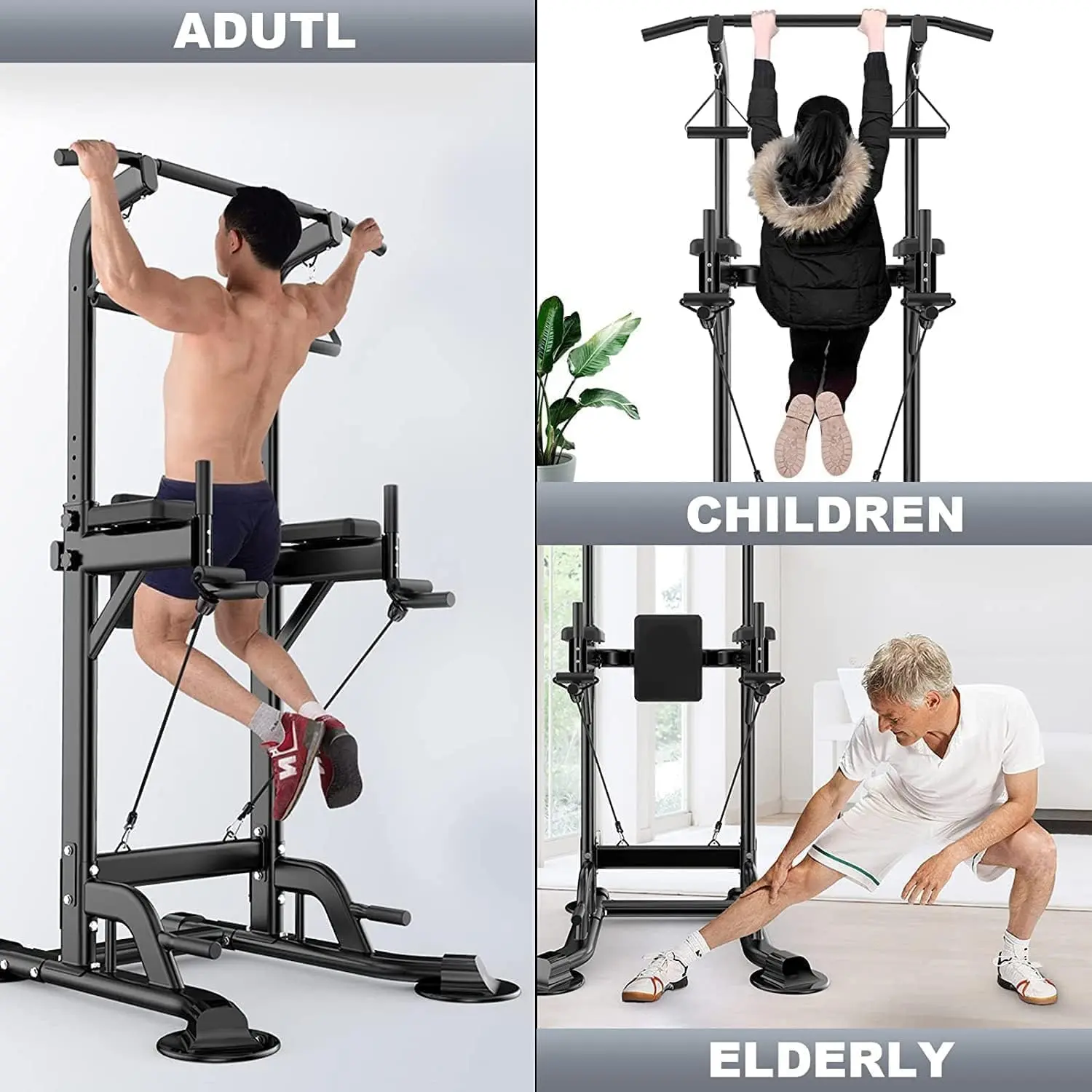 Power Tower Pull Up Bar Dip Station for Home Gym Adjustable Height Strength Training Workout Equipment dealsforyoudays Exercise Machine