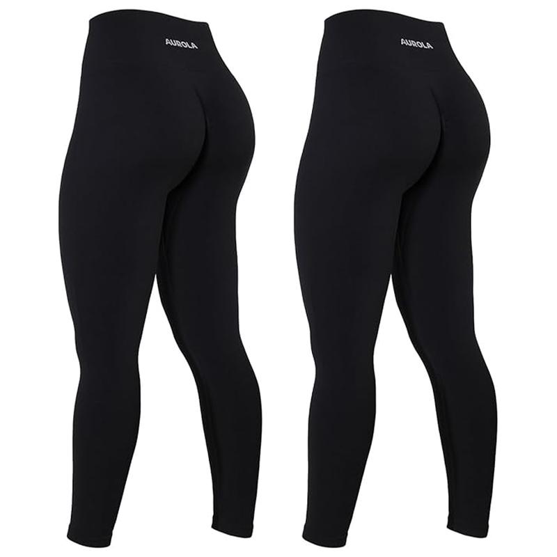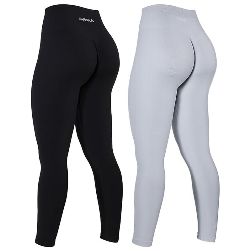 5. AUROLA 2 Pieces Set Power Workout Leggings for Women Tummy Control Squat Proof Ribbed Thick Seamless Scrunch Active Pants