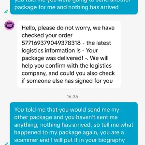 You said you would send me my product and now you come out with other things send me my product or give me my money oh I'm going to put your review again wrong
