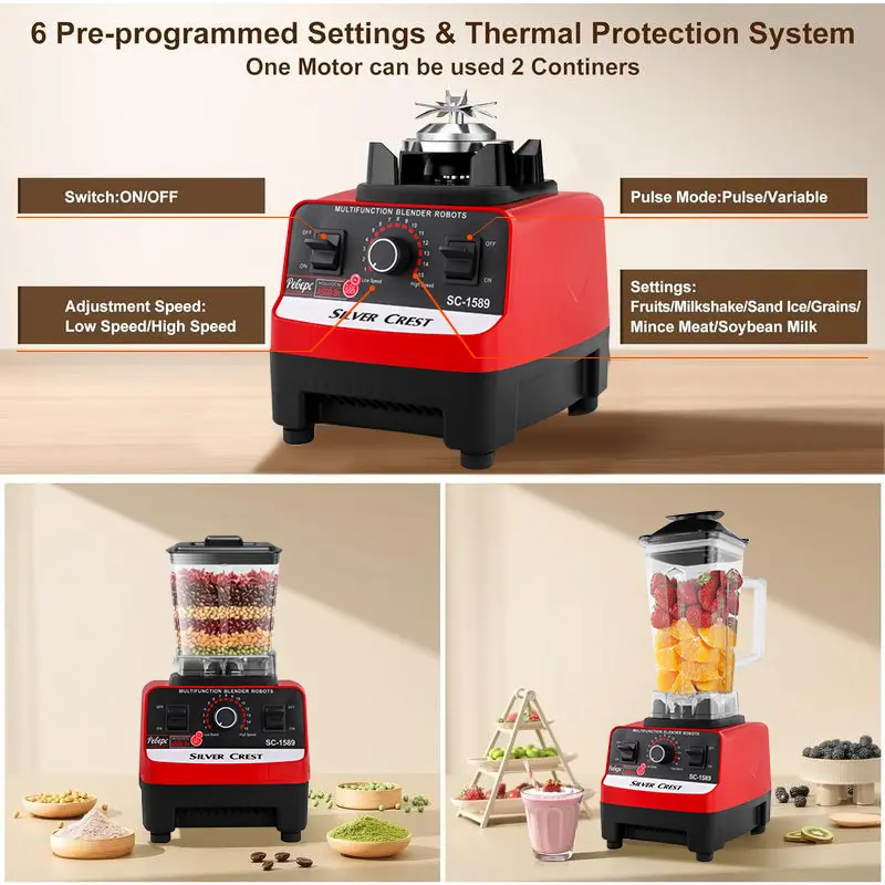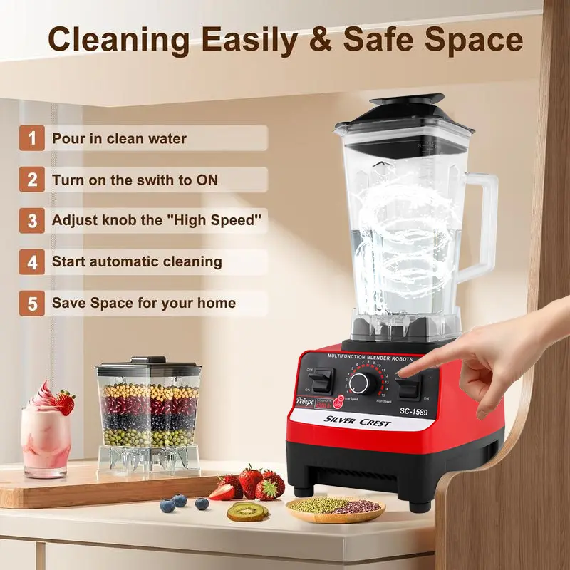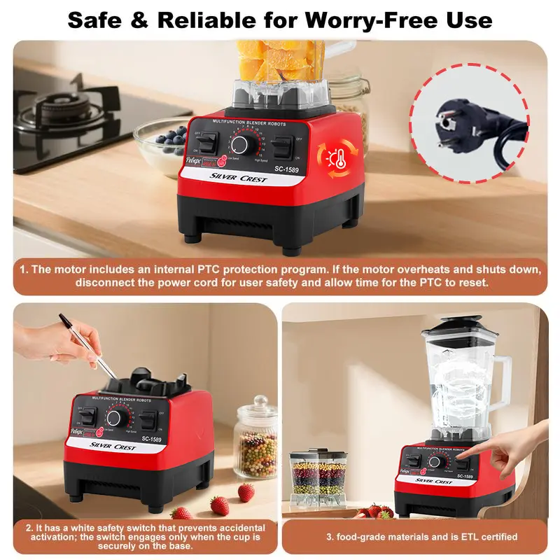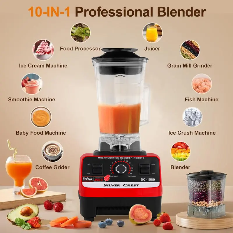 This blender features, ensuring powerful performance for your smoothies. Perfect for kitchen use, it handles ice, crushed frozen drinks, and purees effortlessly. The powerful motor makes it ideal for creating smooth, creamy drinks.