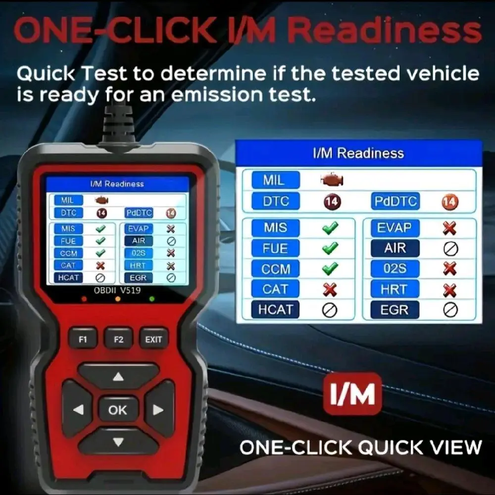 ·I/M Readiness: Quickly determine the cause of the engine light and read I/M readiness.