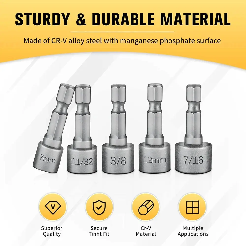 ·Sizes: 3/16, 1/4, 9/32, 5/16, 11/32, 3/8, 7/16, 5mm, 5.5mm, 6mm, 7mm, 8mm, 10mm, 12mm.