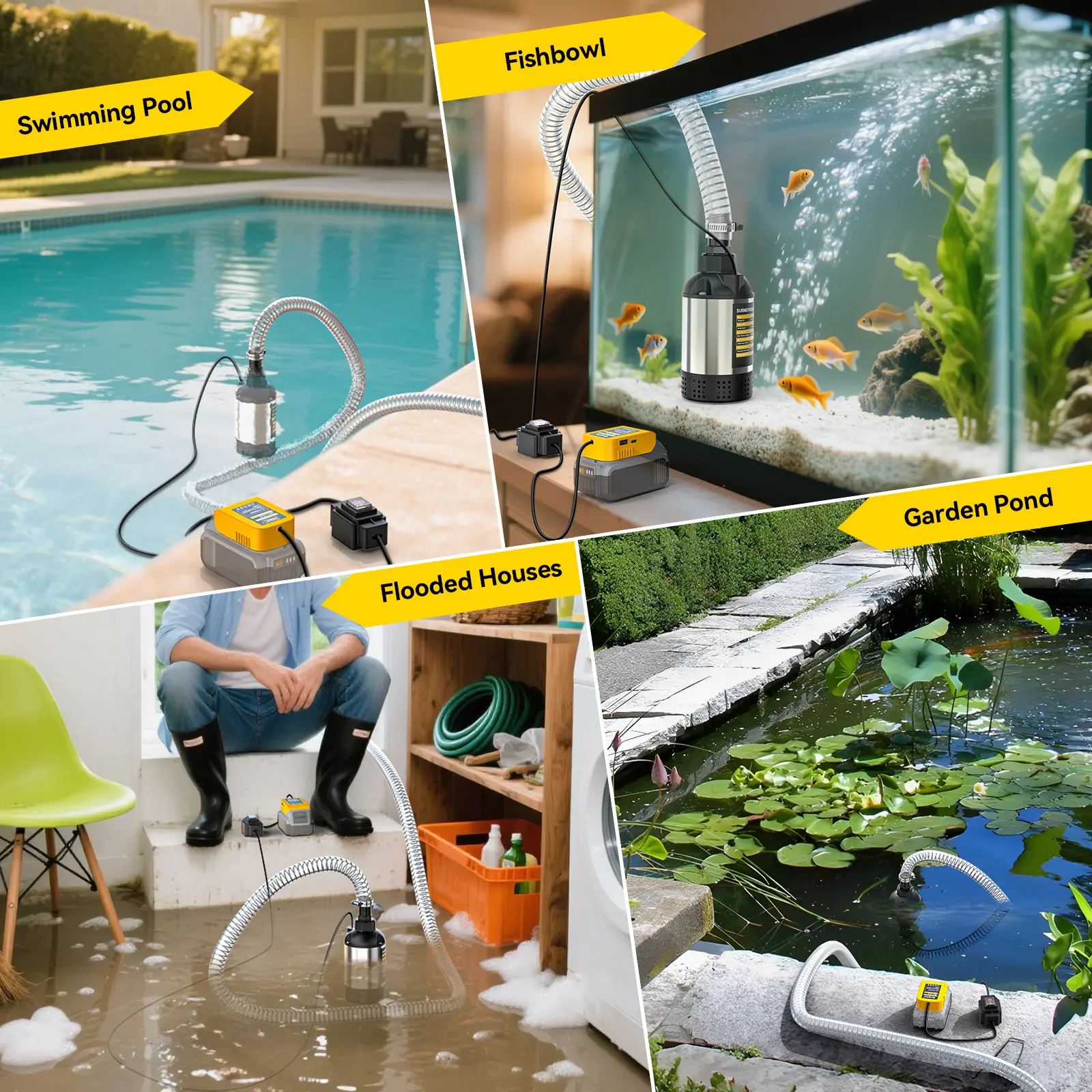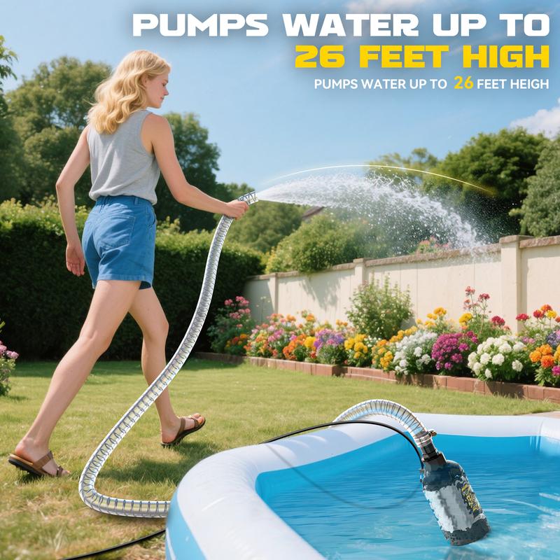 ·Versatile Applications: Lightweight and easy to carry, this portable sump pump fits tight storage spaces and supports fast setup in various situations. Perfect for draining tankless water heaters, hot tubs, pools, cellars, garden ponds, and other flood-prone areas.