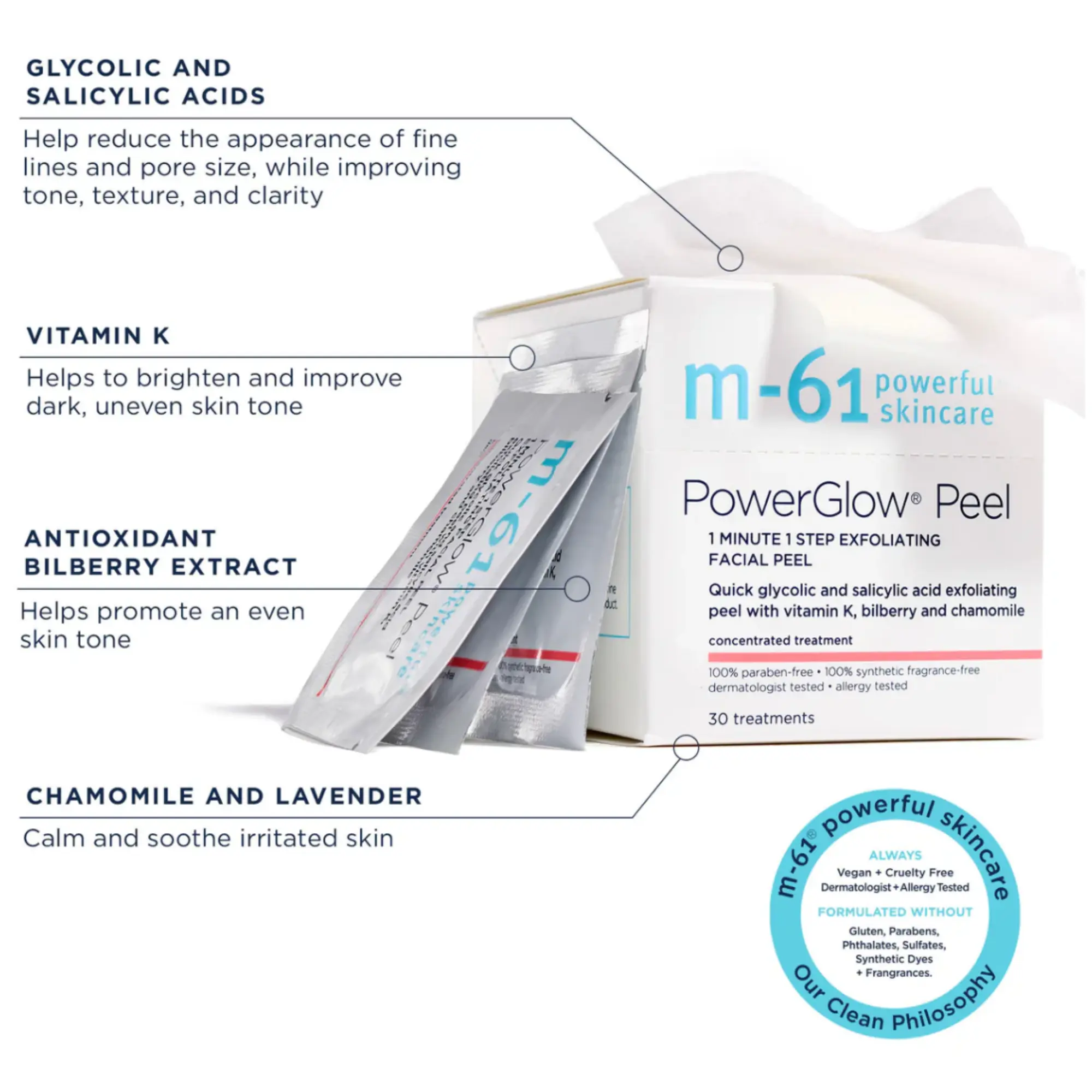 Dramatically improve skin in 1 minute with this 1-step exfoliating peel. This power-packed treatment contains glycolic and salicylic acid, improving skin's tone and texture while reducing pore size and chamomile and lavender to calm and soothe. What you are left with is firmer skin with a radiant and renewed glow!