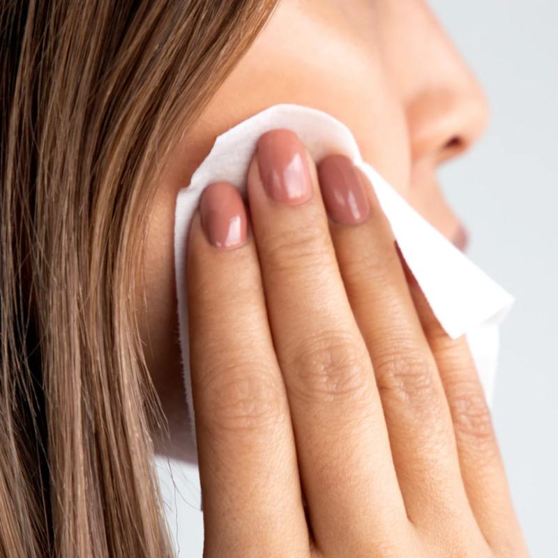 ·After cleansing and drying skin, wipe pre-soaked towelette over face, neck and décolleté while avoiding eye area.