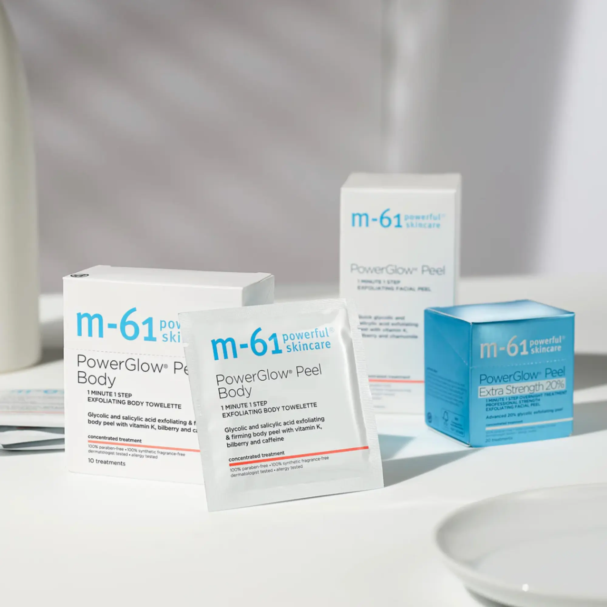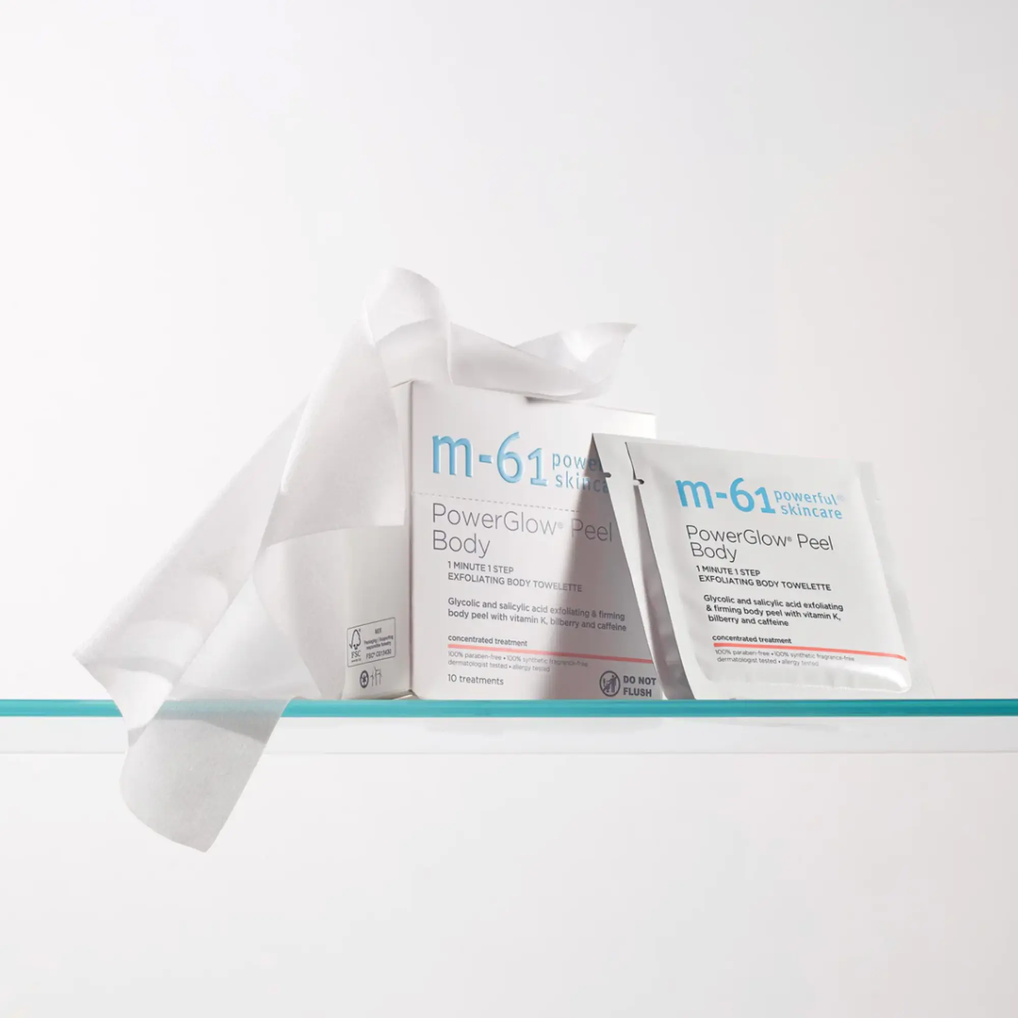 Glycolic and salicylic acid exfoliating and firming body peel with vitamin K, bilberry and caffeine. This transformative, radiant glow body peel provides deep exfoliation while helping to firm, reduce ingrown hairs, keratosis pilaris and body blemishes.