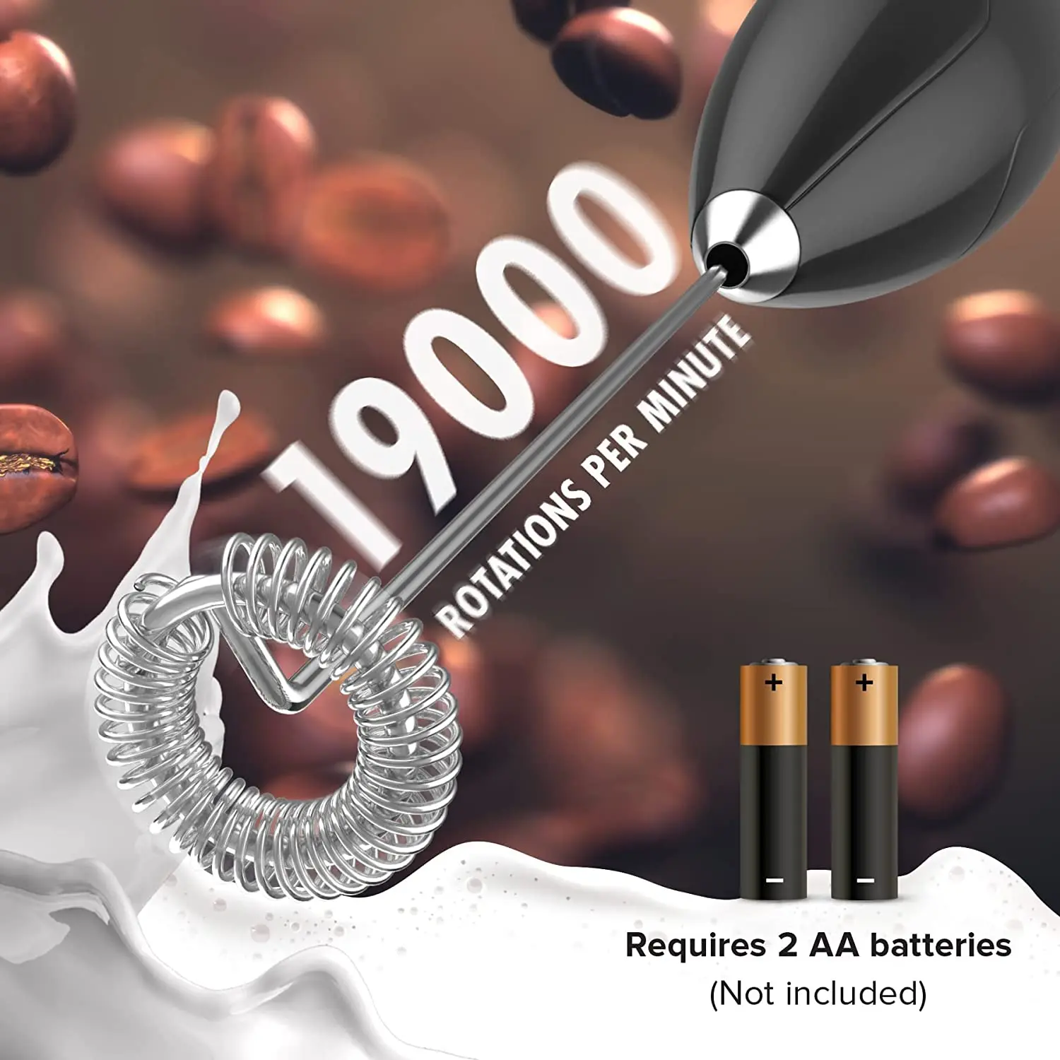 ·Battery Operated For Perfect Froth in no Time: The mixer is battery powered so you don't have to worry about cords and finding sockets. Heat up the milk, immerse the espresso maker into the cup and turn it on. The milk foamer will start creating creamy froth on the milk instantly. Within 15 - 20 seconds, you have a cup filled with creamy froth and ready to go into your coffee latte.