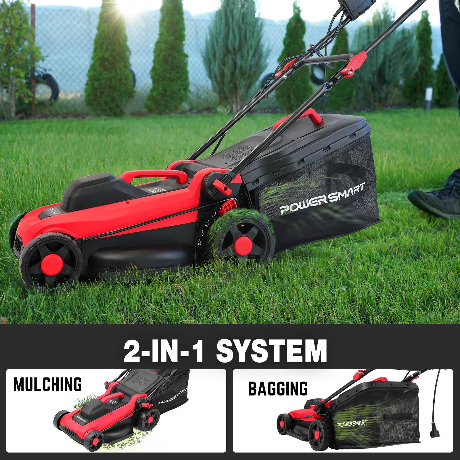 PowerSmart 14" Electric Corderd Push Lawn Mower, 2-in-1 Lawn Mower (DB8015)