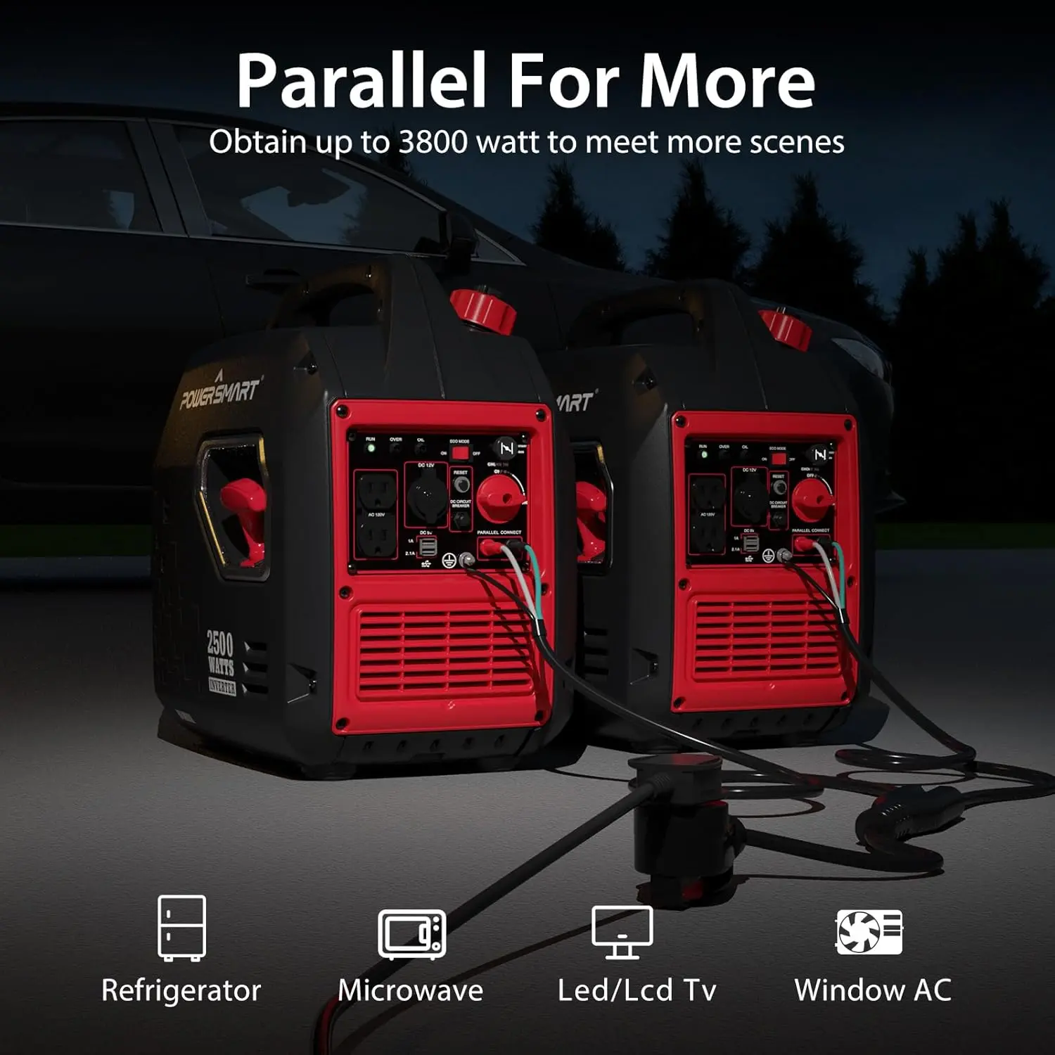 This generator is parallel-capable, allowing you to connect another 2500-watt generator for double power output. Ideal for RV enthusiasts and high-power requirements.