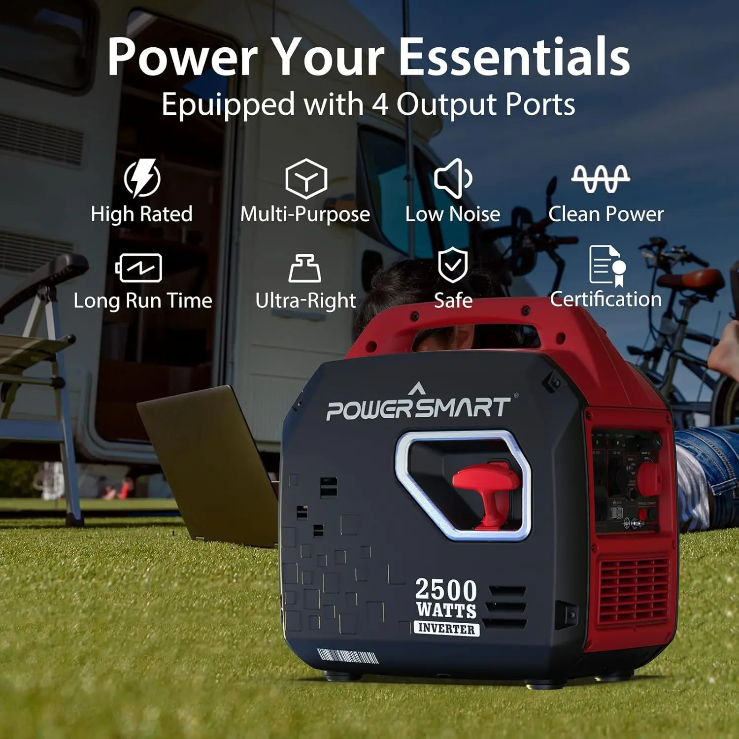 🌟 PowerSmart 2500-Watt Portable Gas Inverter Generator