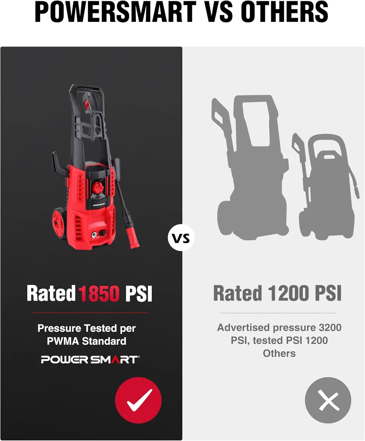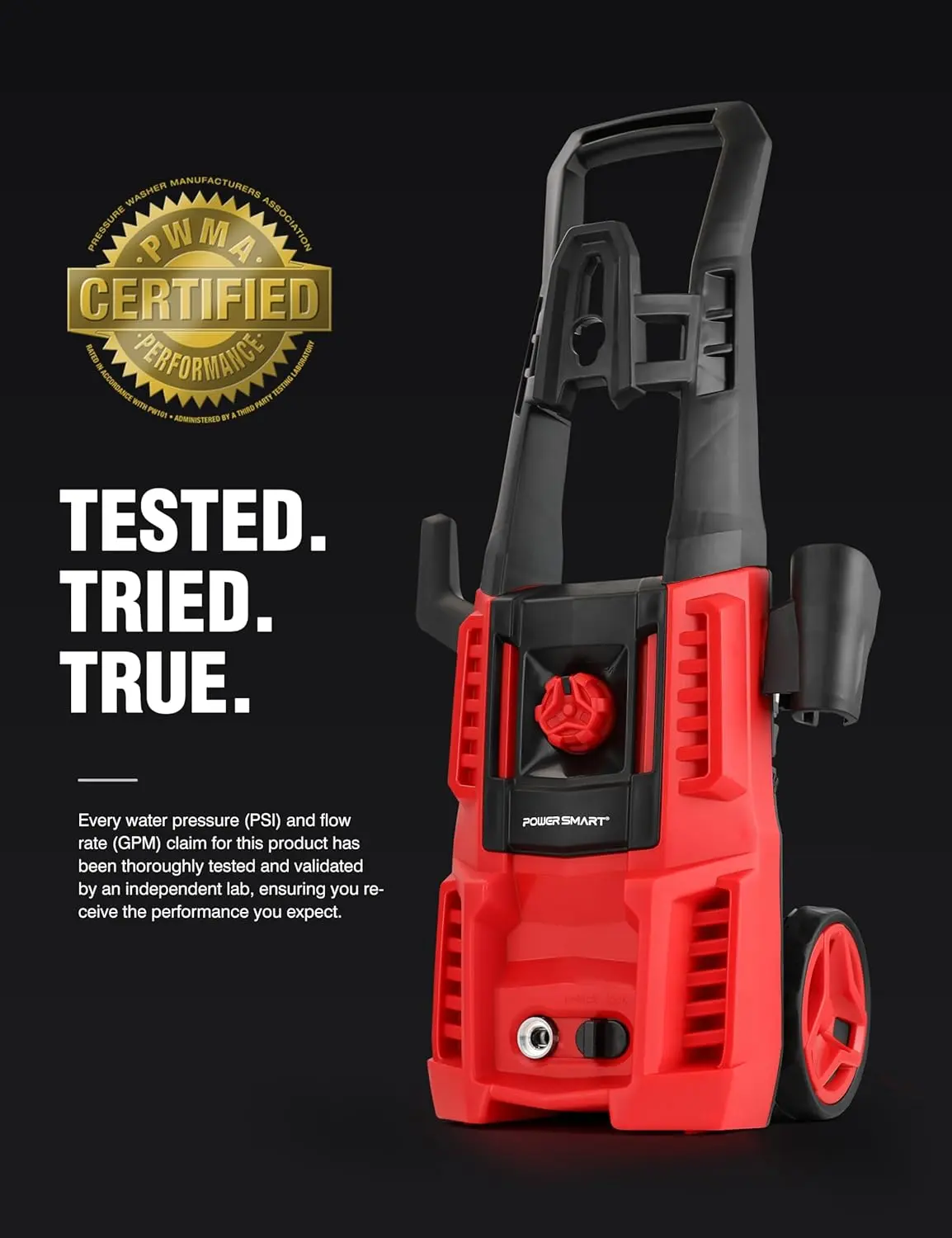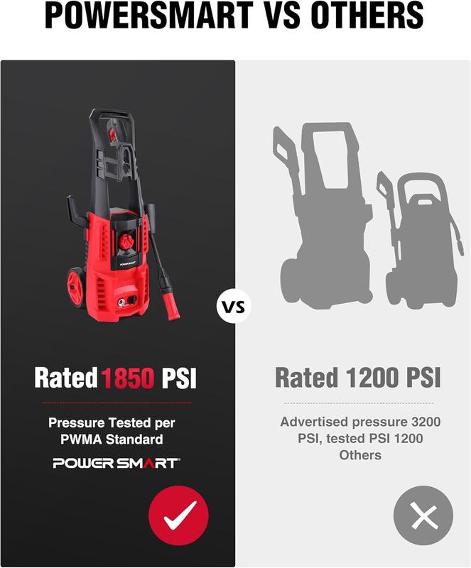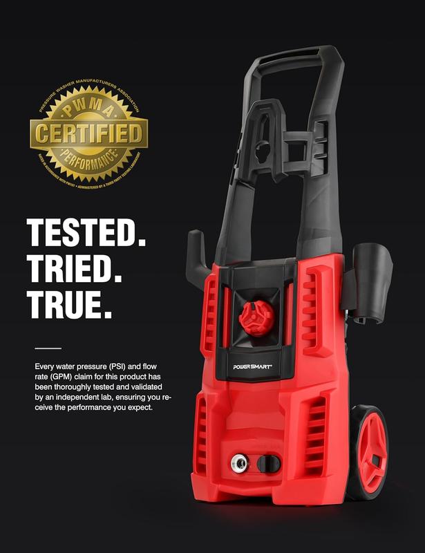 ✨ TRUE POWER: Professionally tested for real 1850 PSI cleaning power (±3% tolerance). Independently verified by PWMA standards, ensuring no performance inflation. This powerful washer delivers robust cleaning capabilities for various tasks.