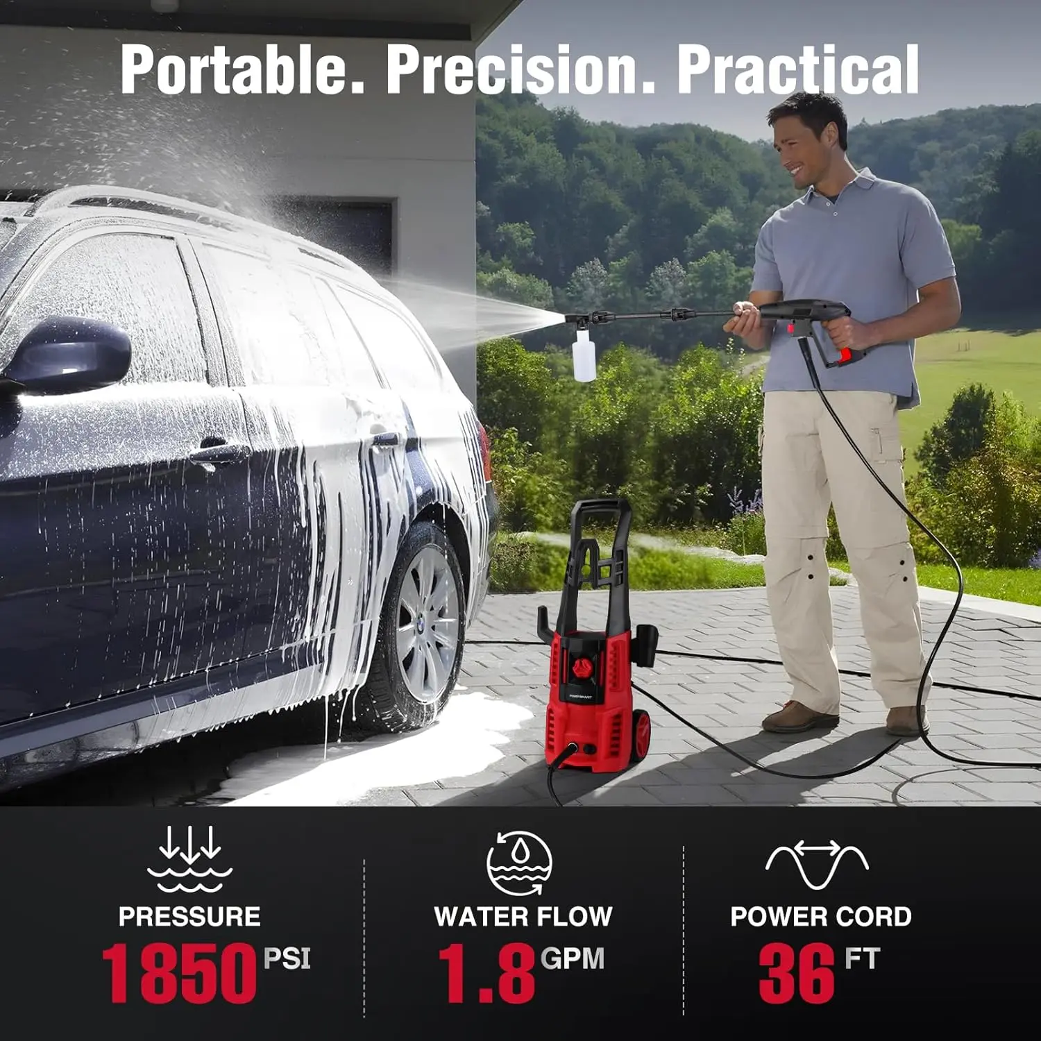 💧 WATER EFFICIENCY: With a precision 1.8 GPM flow rate, this washer conserves water. It's 35% more water-efficient than standard pressure washers, maintaining effective cleaning power. Ideal for eco-conscious users who value water savings.