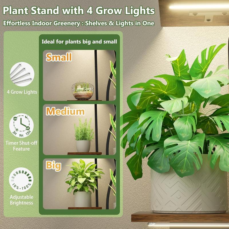 ·[Smart Lighting Customization]: Plant stand indoor equipped with 3 adjustable LED grow lights offering 10 dimmable settings and 3/9/12-hour timer options. Tailor illumination intensity for different growth stages - from gentle nurturing beams to full-spectrum bloom support. Plant shelf equipped with an anti-toppling belt to prevent children or pets from accidentally dropping the plant stand.