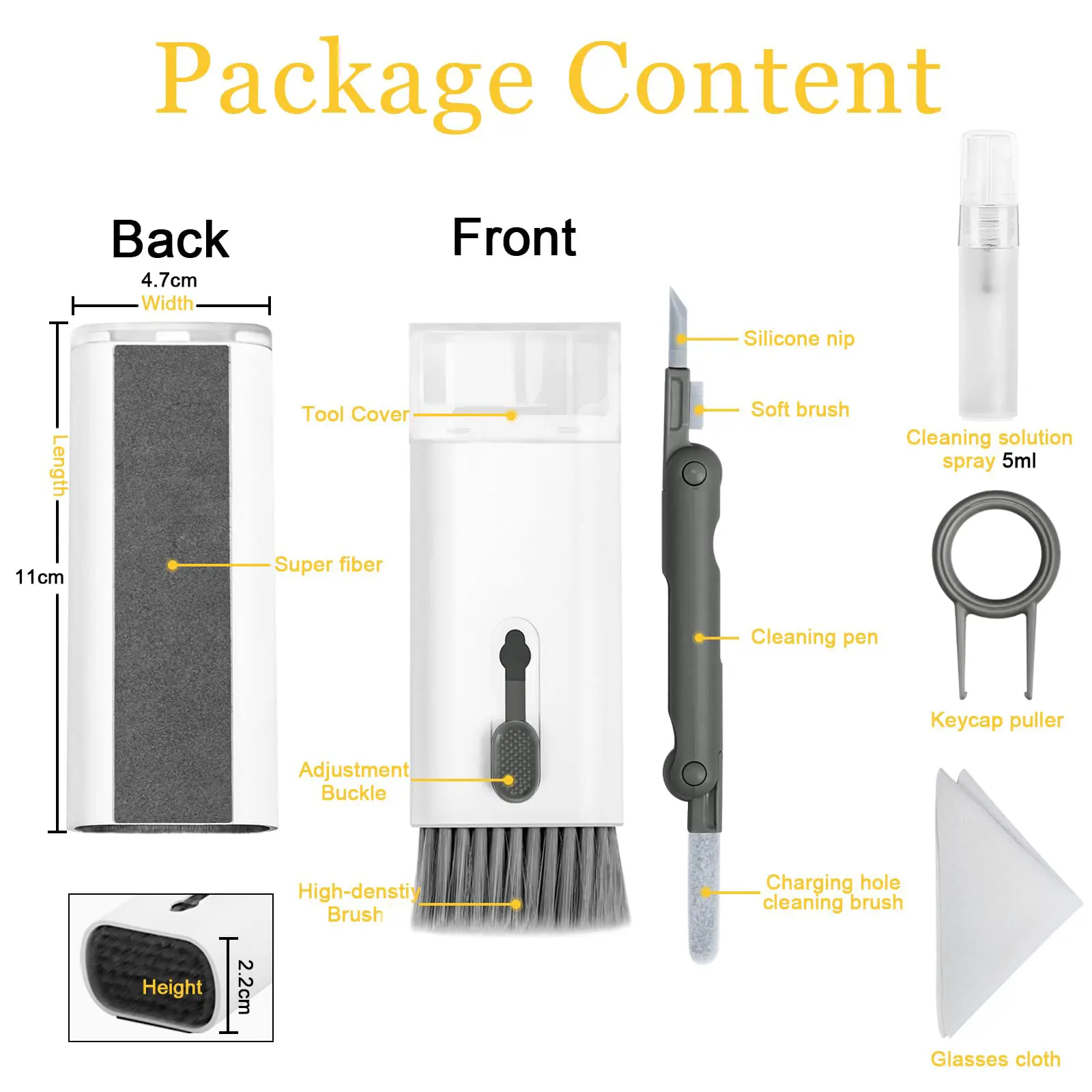 high-density retractable keyboard brush with the true super microfiber fiber cloth, key puller, and soft plush glasses clean cloth.