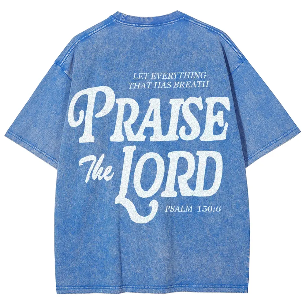 5. "Praise The Lord" Christian Graphic T-Shirt, Faith Fashion Lover Top, Bible Verse Pattern, Vintage Washed Fabric, Casual And Versatile Crewneck Soft t shirts women oversized tshirt women vintage graphic tees