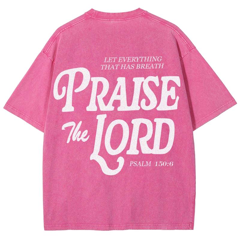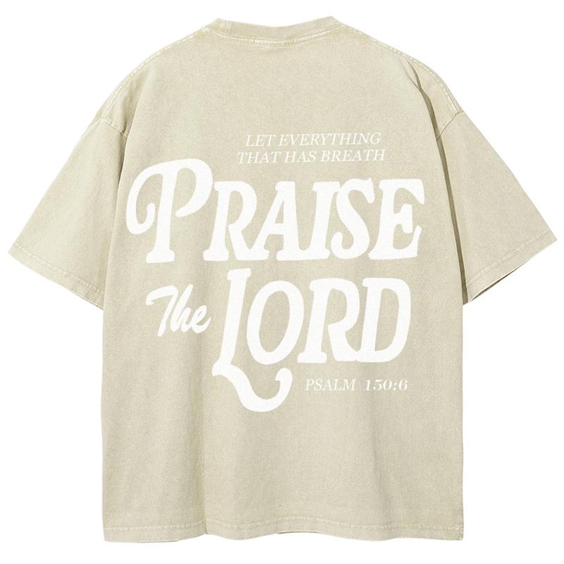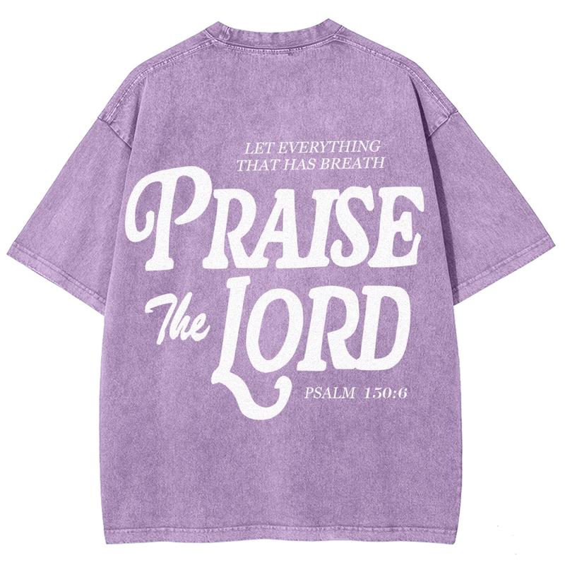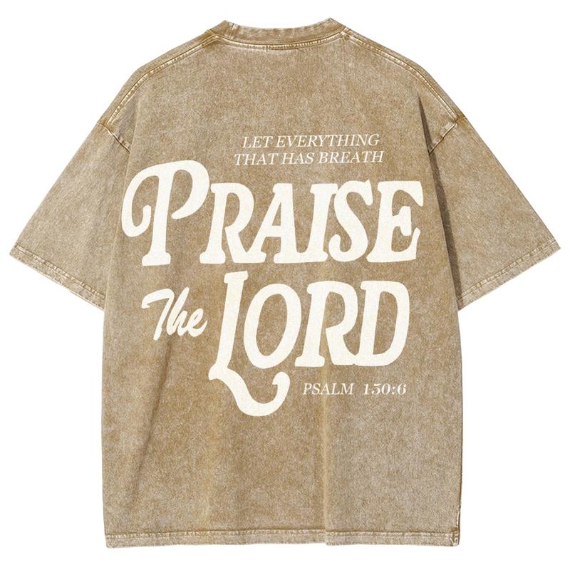 "Praise The Lord" Christian Graphic T-Shirt, Faith Fashion Lover Top, Bible Verse Pattern, Vintage Washed Fabric, Casual And Versatile