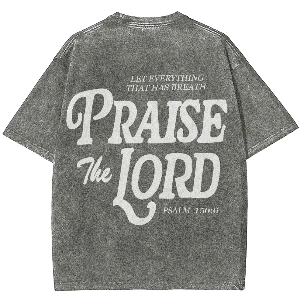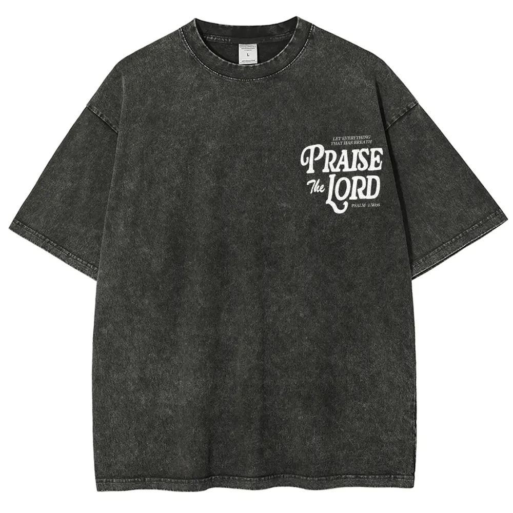 "Praise The Lord" Christian Graphic T-Shirt, Faith Fashion Lover Top, Bible Verse Pattern, Vintage Washed Fabric, Casual And Versatile Crewneck Soft t shirts women oversized tshirt women vintage graphic tees