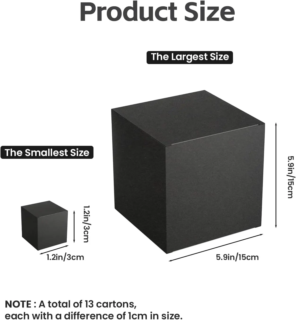 ·Rich Combinations: This link contains a total of 13 square gift boxes. Sizes increase from 1.2 inches to 5.9 inches. You can pack them in small to large boxes, or use each box individually.