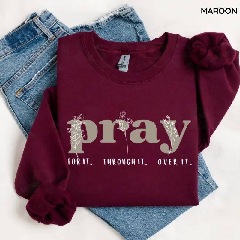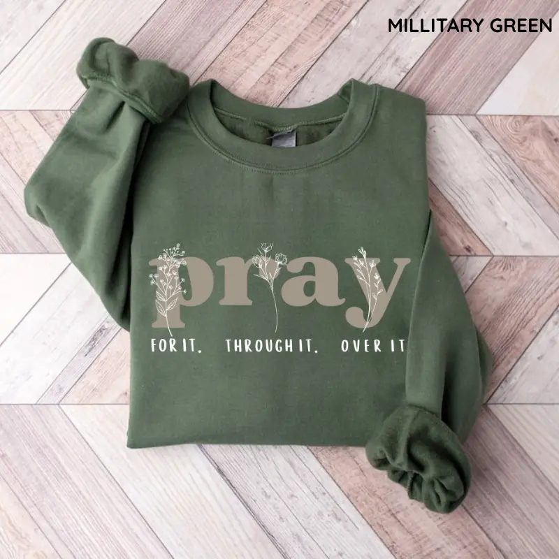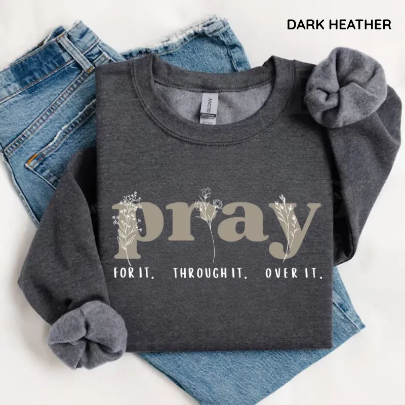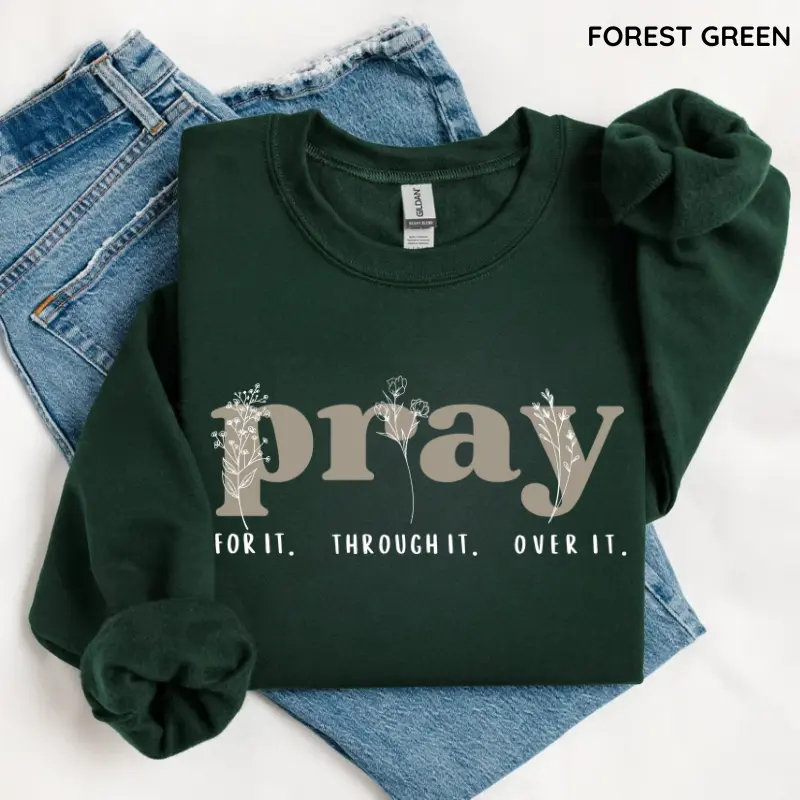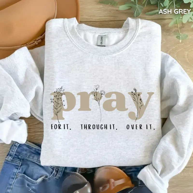 [GILDAN] Pray for It Pray Over It Christian Sweatshirt, Jesus Over Everything Shirt, Jesus Bible Verse, Faith Crewneck Sweatshirt