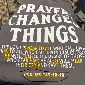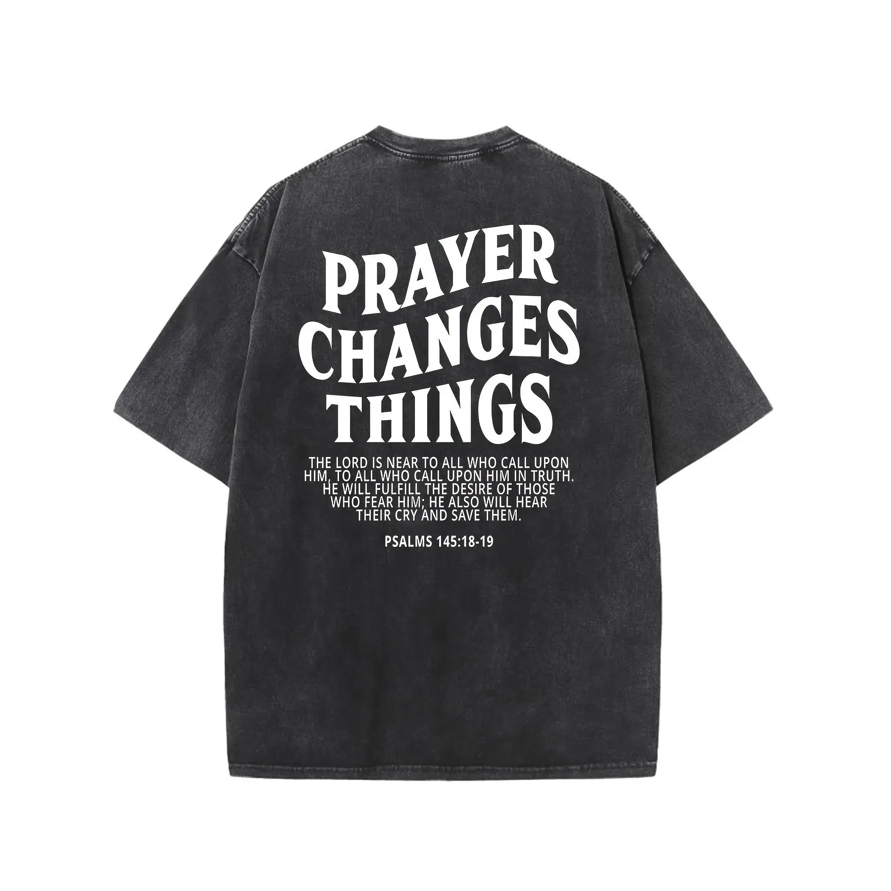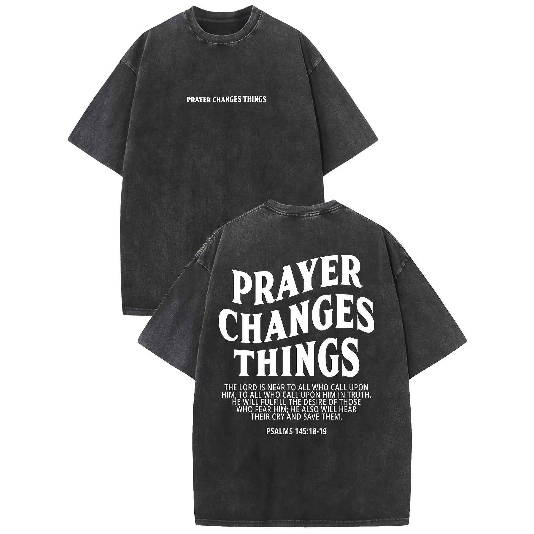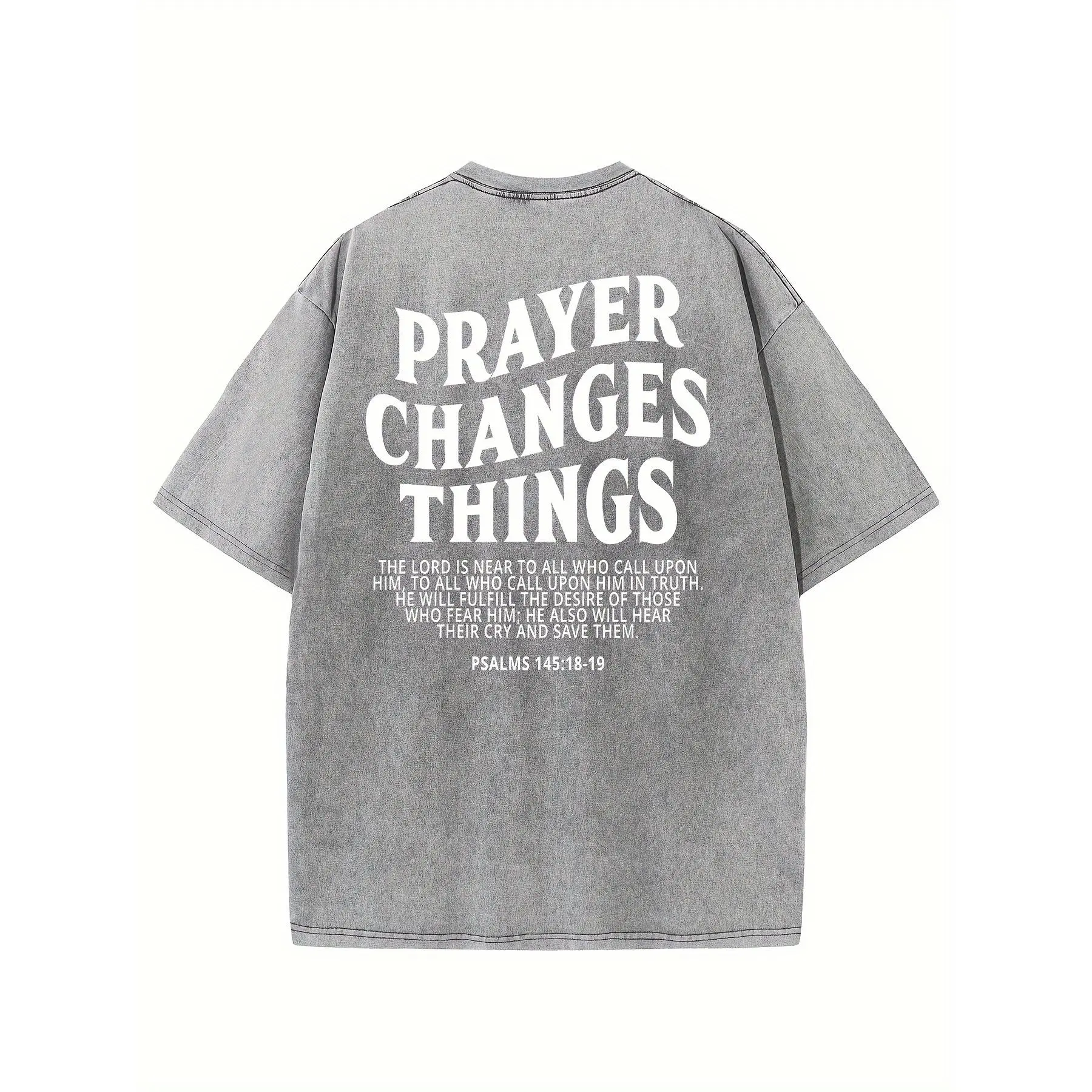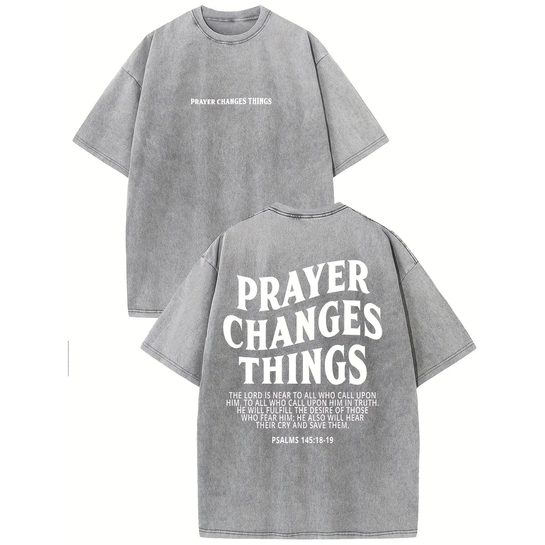 5. Prayer Changes Everything Vintage Washed High-Quality Patterned T-Shirt Men's T-Shirt Vintage Summer Clothing Drop Shoulder Sleeves Round Neck Top Short Sleeve