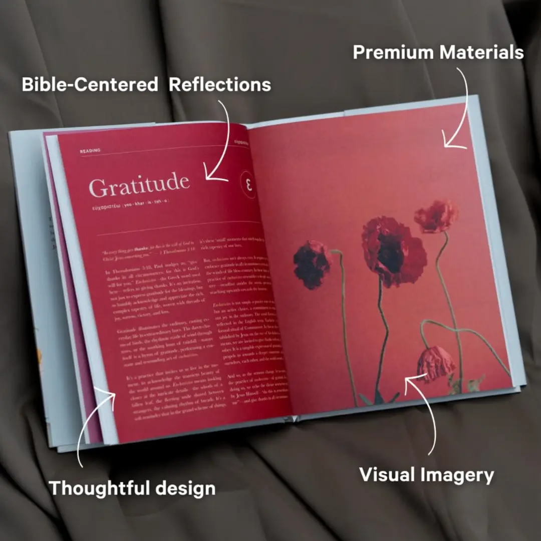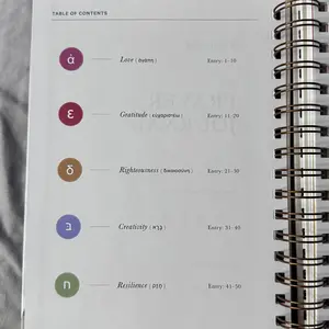 It's an amazing journal that will help you communicate with God in your own words. The book of contents are on Love, Gratitude, Righteousness, Creativity, and Resilience.