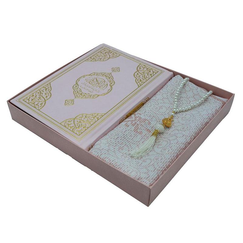 Prayer Rug Gift Box Set - With Quran & Prayer Beads Pink