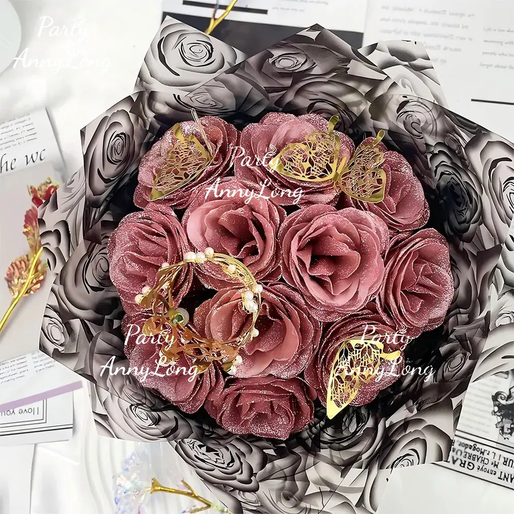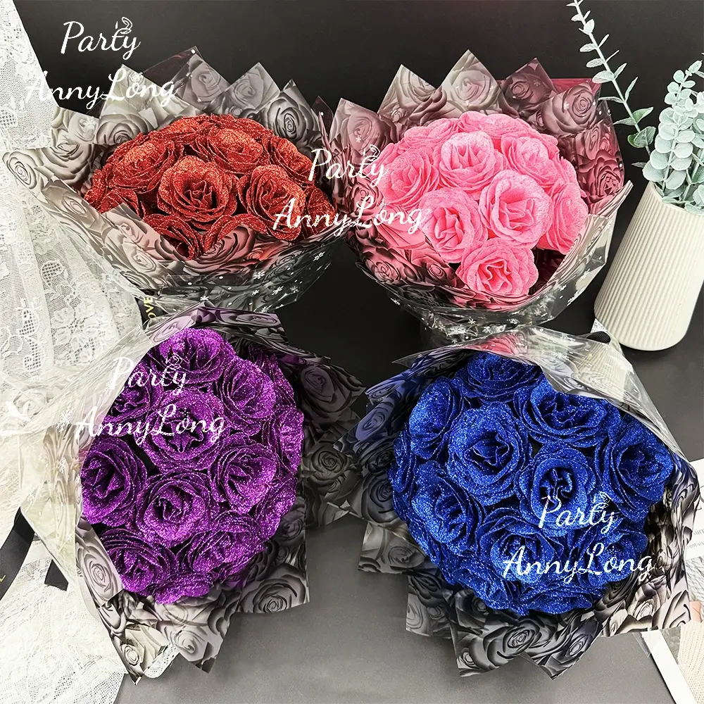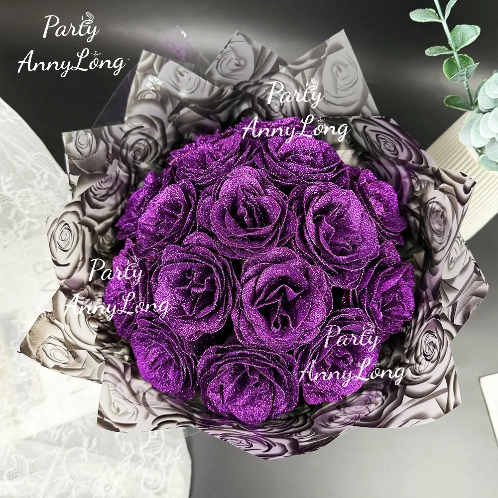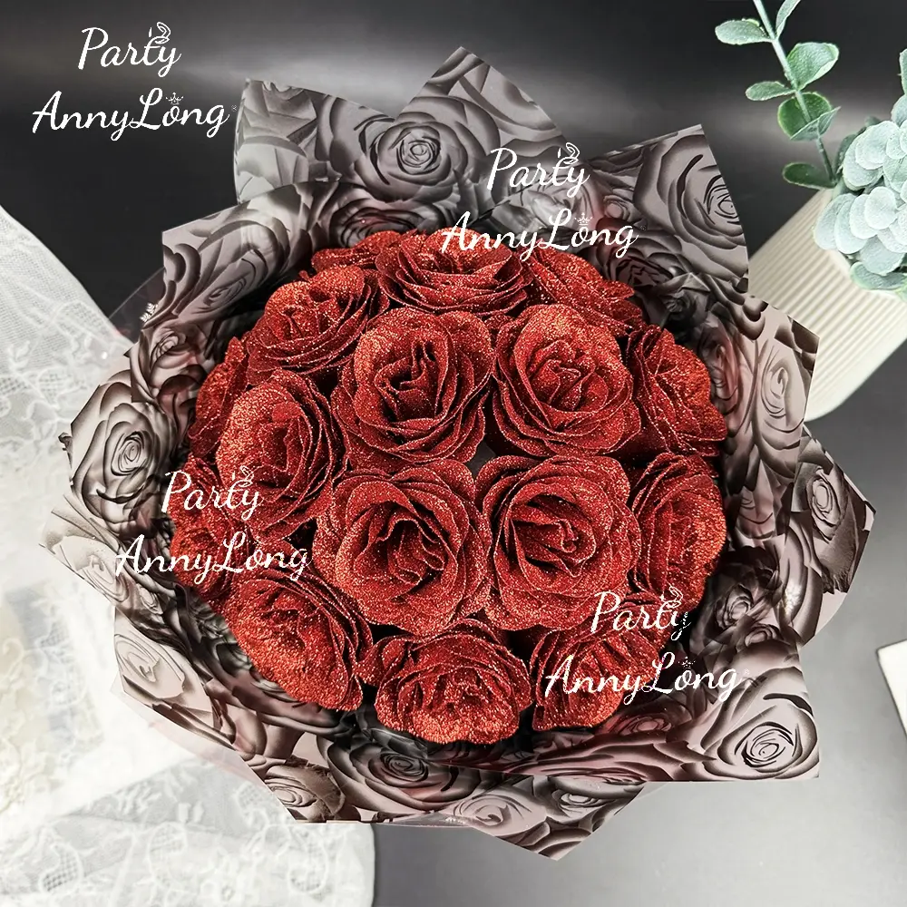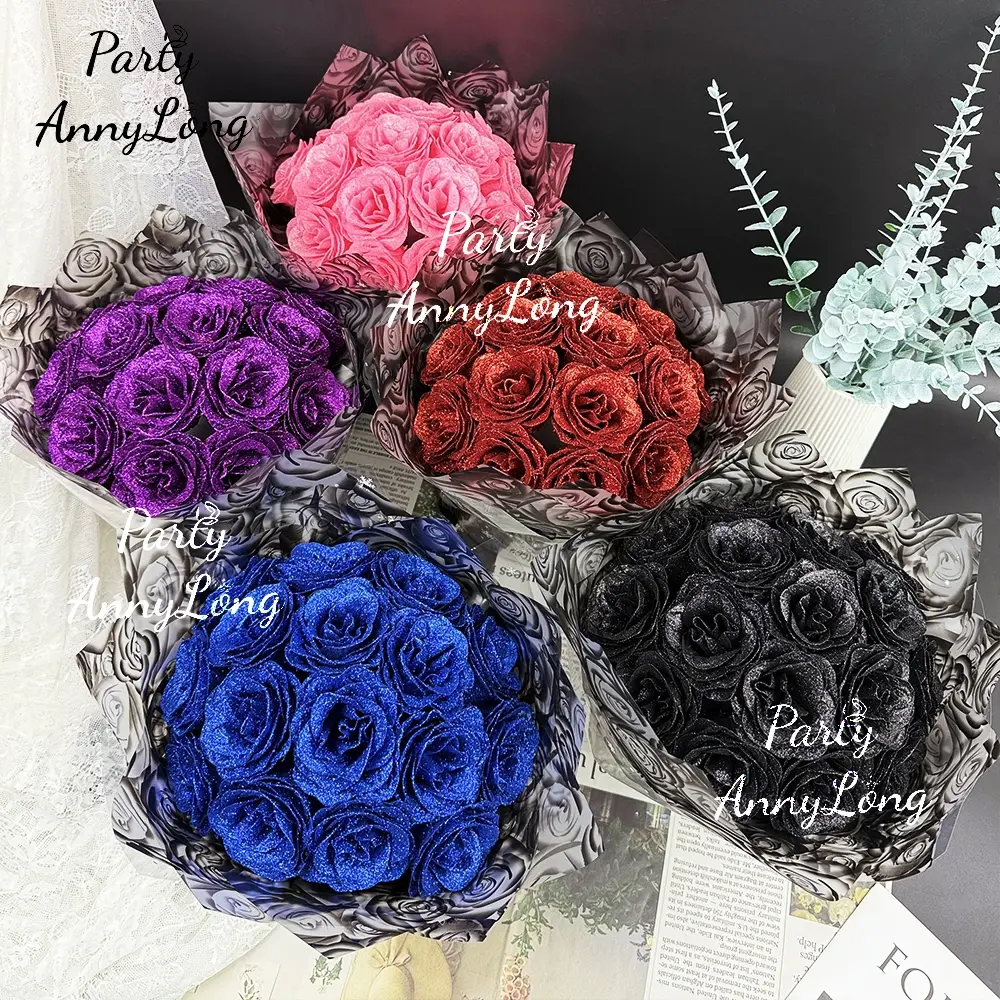 Sparkling Rose Bouquet, No Assembly Required, Valentine's Day Wedding Anniversary Engagement Eternal Artificial Roses, Birthday Gift, Vibrant Faux Flowers