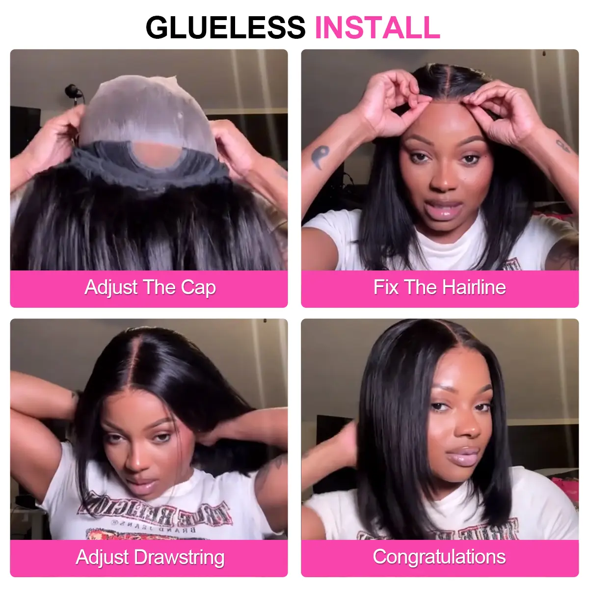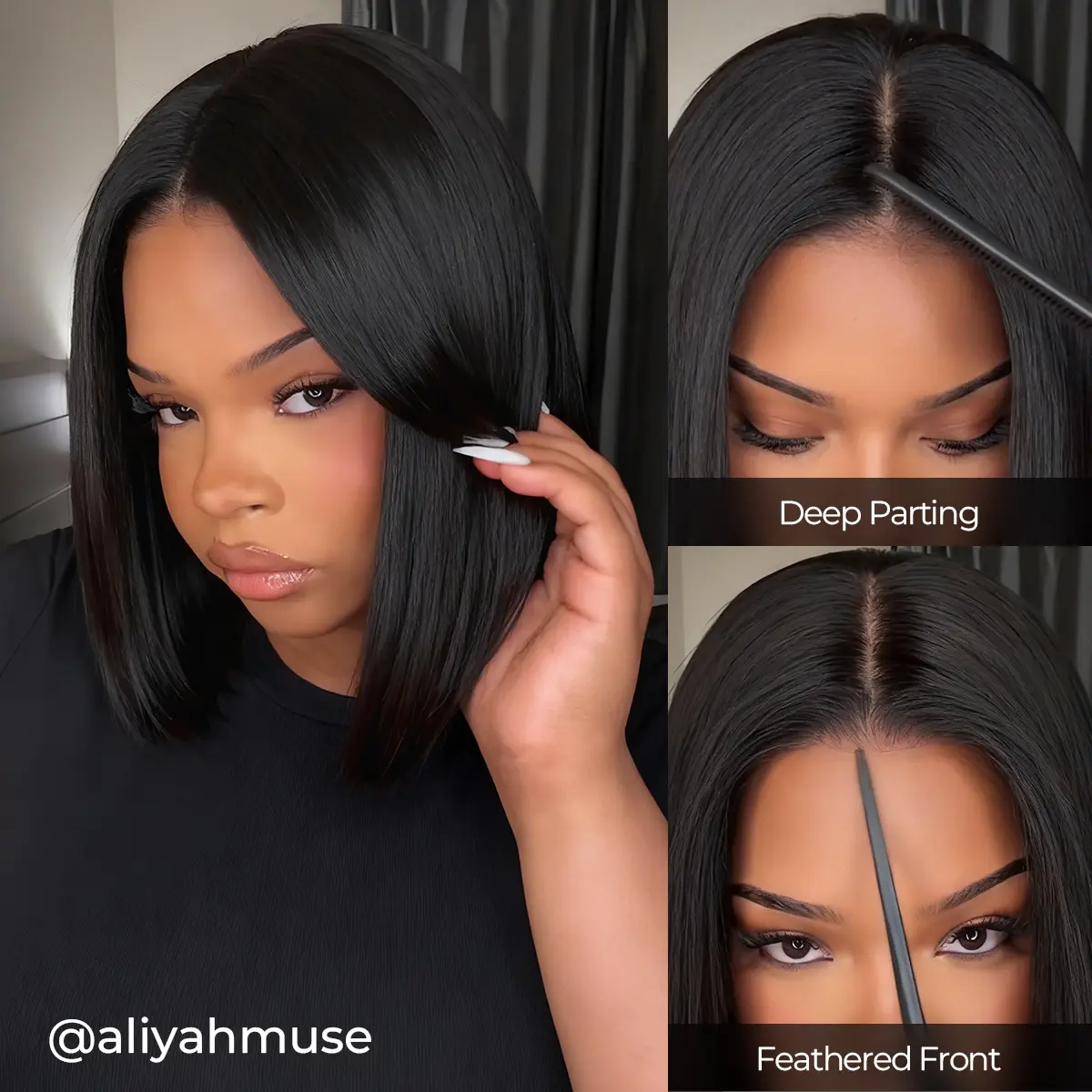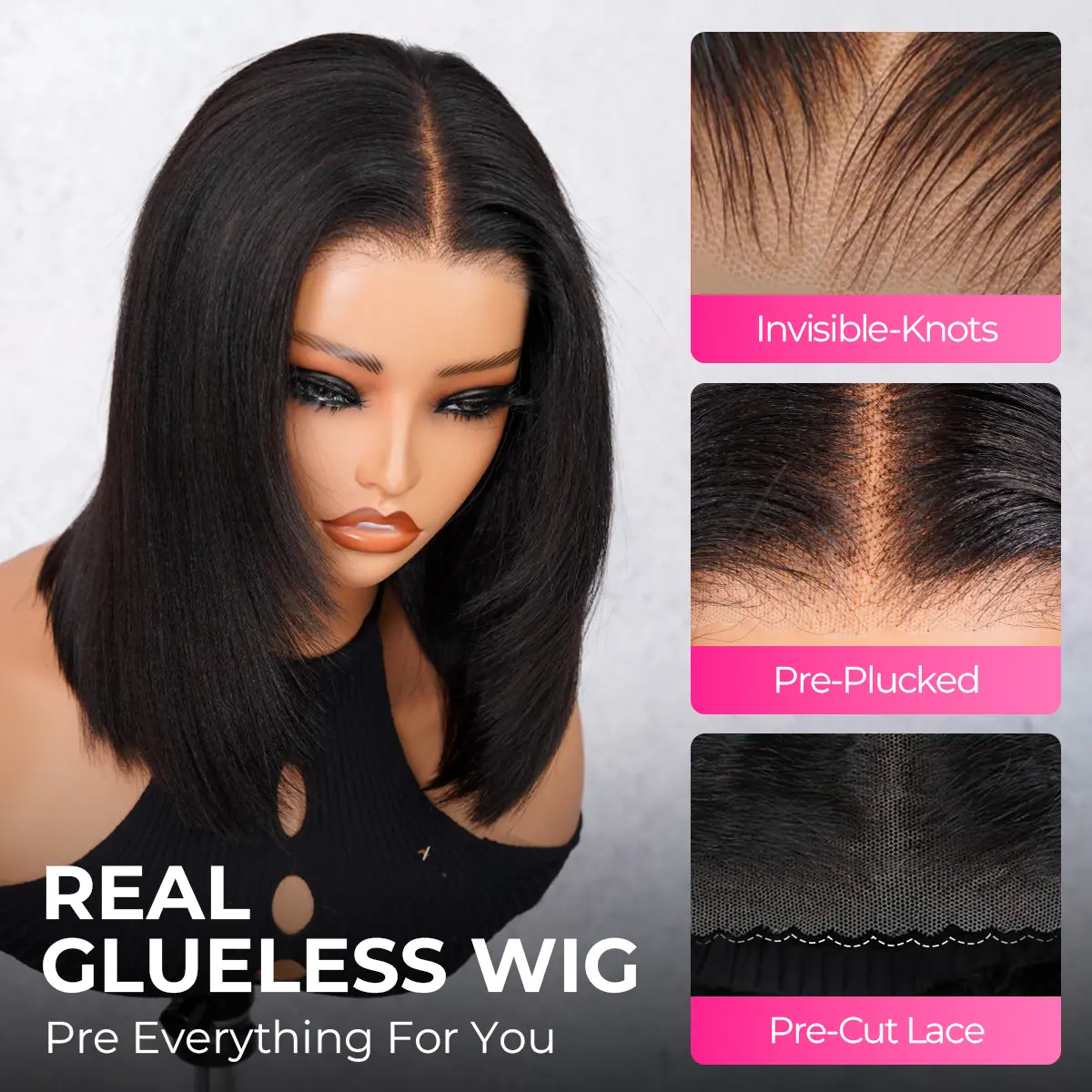 Yaki Straight Wear Go Pre-Layered Cut Bob Wig Pre Cut Glueless HD T Part Lace Front Wig Natural Black Deep Part Lace Glueless Wig #TikTokShopBacktoSchool