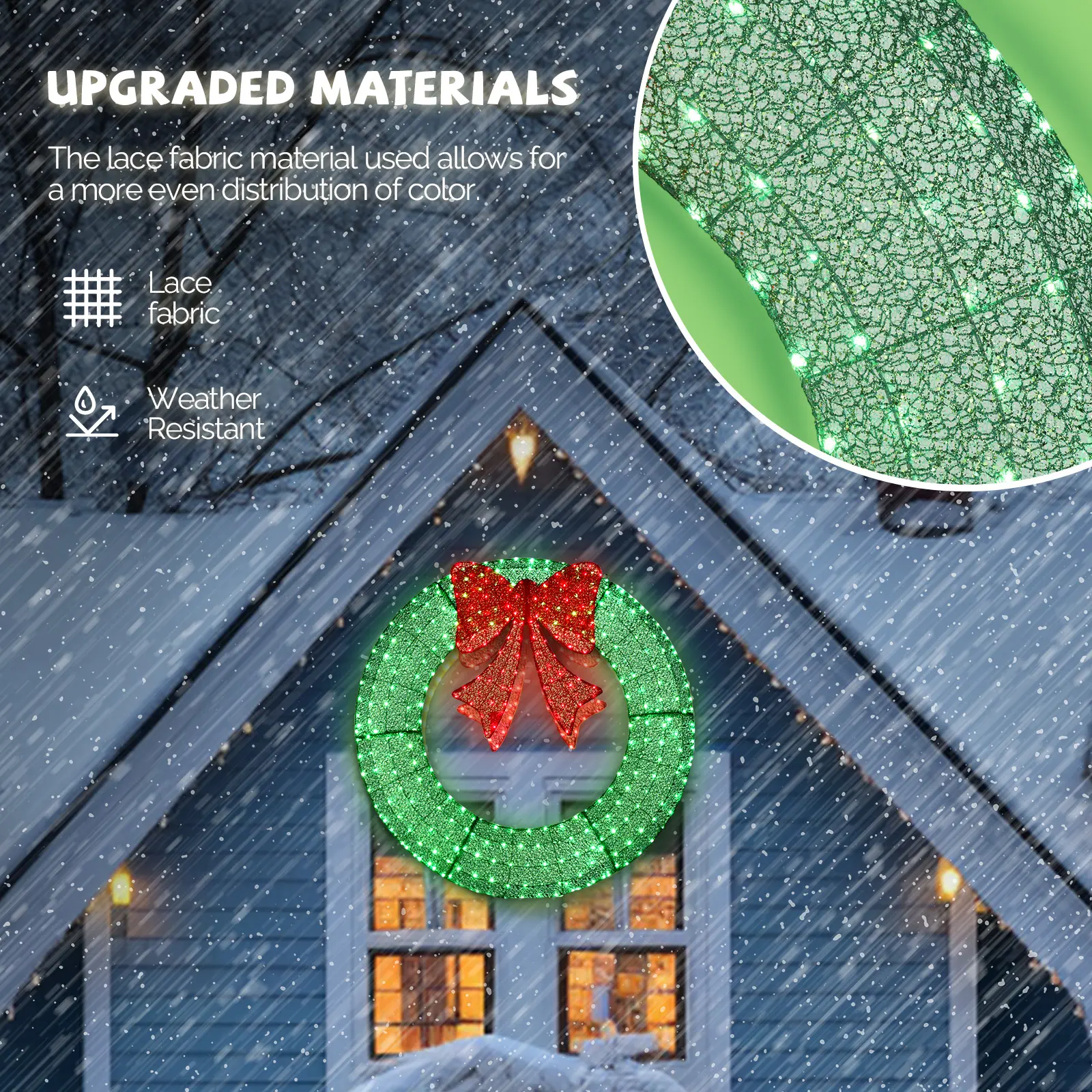 Celebrate the season with this 48in Pre-Lit Christmas Wreath.It features 315 warm white LED lights wrapped around a durable metal frame.The green wreath with a red bow adds a classic touch.Perfect for your home's exterior or garden, it brings cheer and elegance.Easy assembly and storage make it user-friendly.