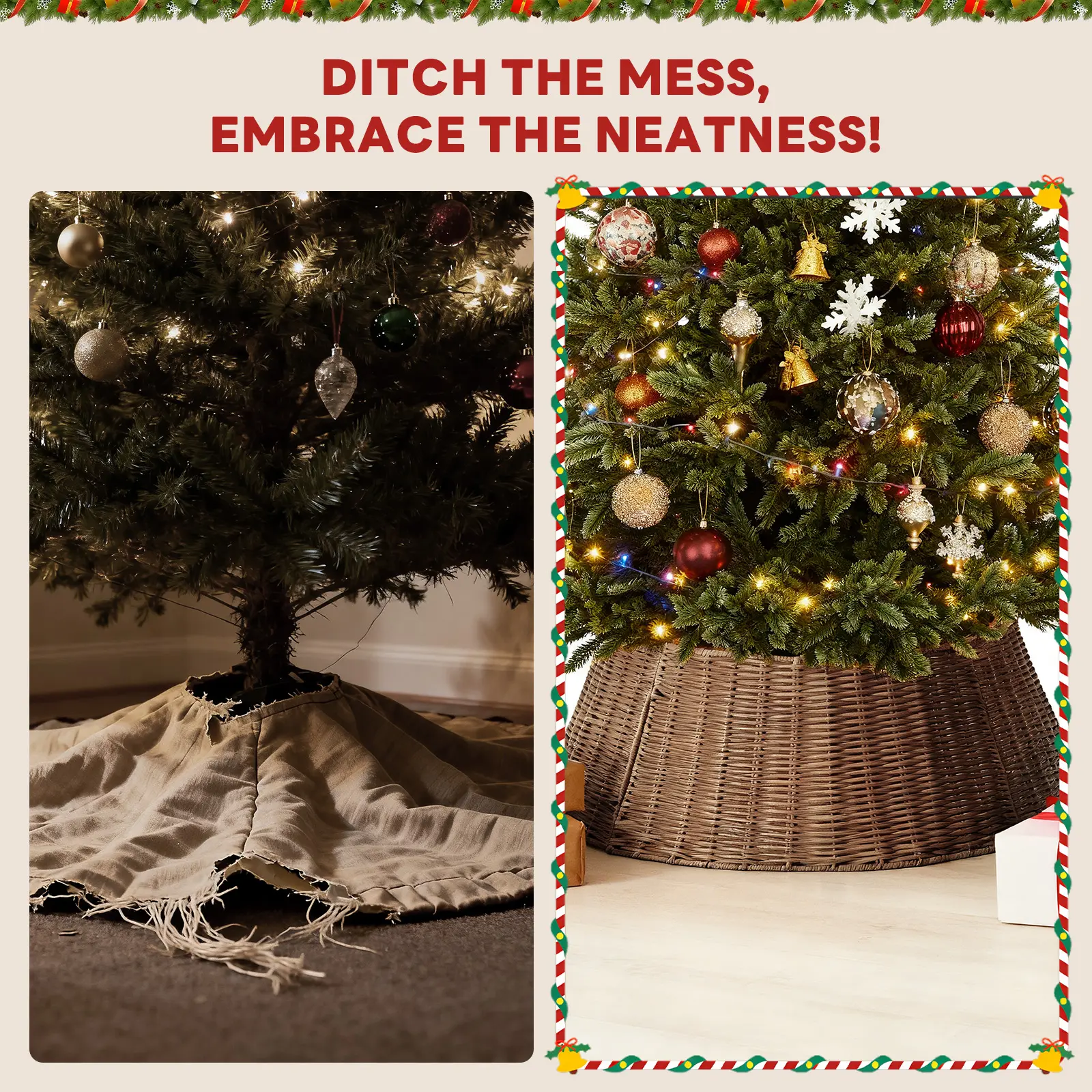 【Timeless Braided Elegance】Enhance your Christmas display with this beautifully woven tree collar, featuring a classic braided pattern that blends rustic warmth with refined sophistication. It instantly elevates your holiday décor, adding a cozy, designer-inspired finish to any living room.
