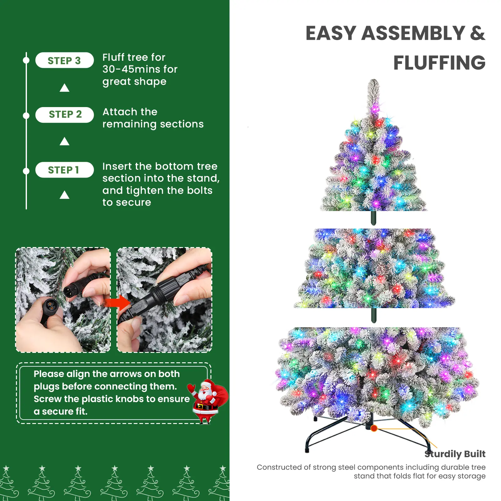 I have owned a lot of trees 🌲 but this Shareconn RBG is the most beautiful tree so full it didn’t take me about 20min to fluff out💚 The flocking stays on and don’t fall off! Amazing quality 💯 Run to buy this tree you will love it!! I am obsessed 😍