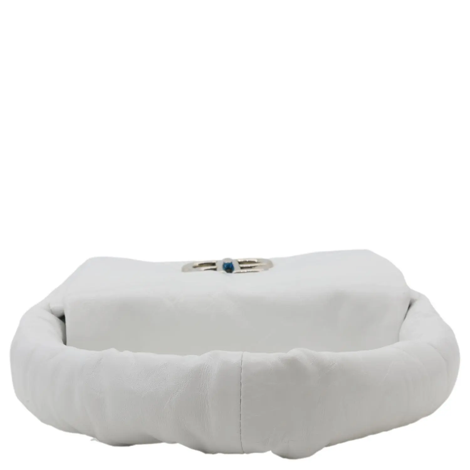 BALENCIAGA Monaco Calfskin Leather Shoulder Bag in White showcases a sleek, structured silhouette with smooth, premium leather. A chic statement piece perfect for elevating both casual and dressy looks.