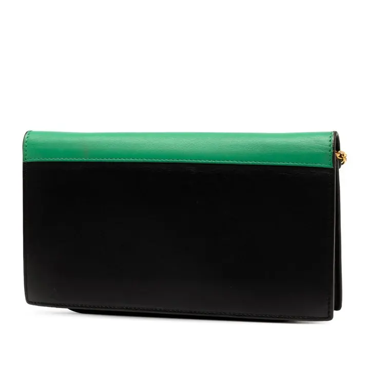 This pre-owned Celine Tricolor Leather Pocket Envelope Wallet on Chain is a stylish and versatile accessory. Made from tricolor leather, it offers a unique design with a chain strap for easy carrying. Perfect for those seeking a pre-owned option.