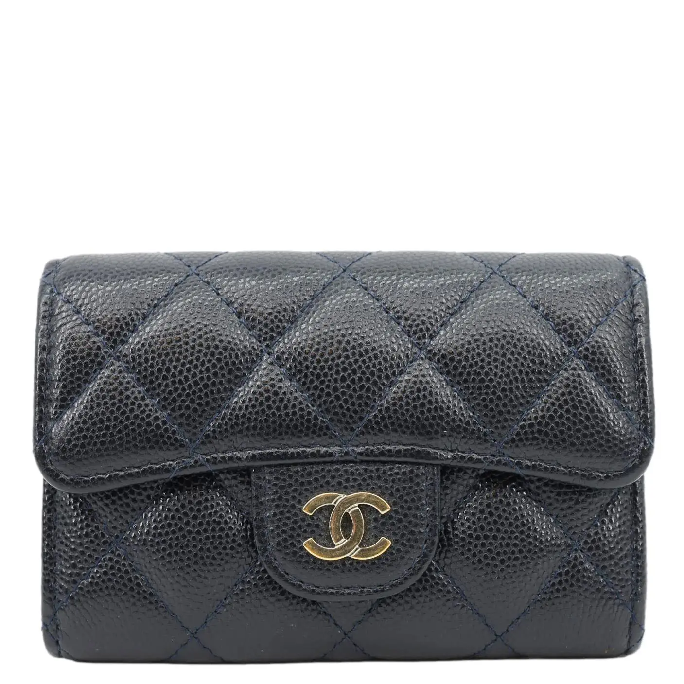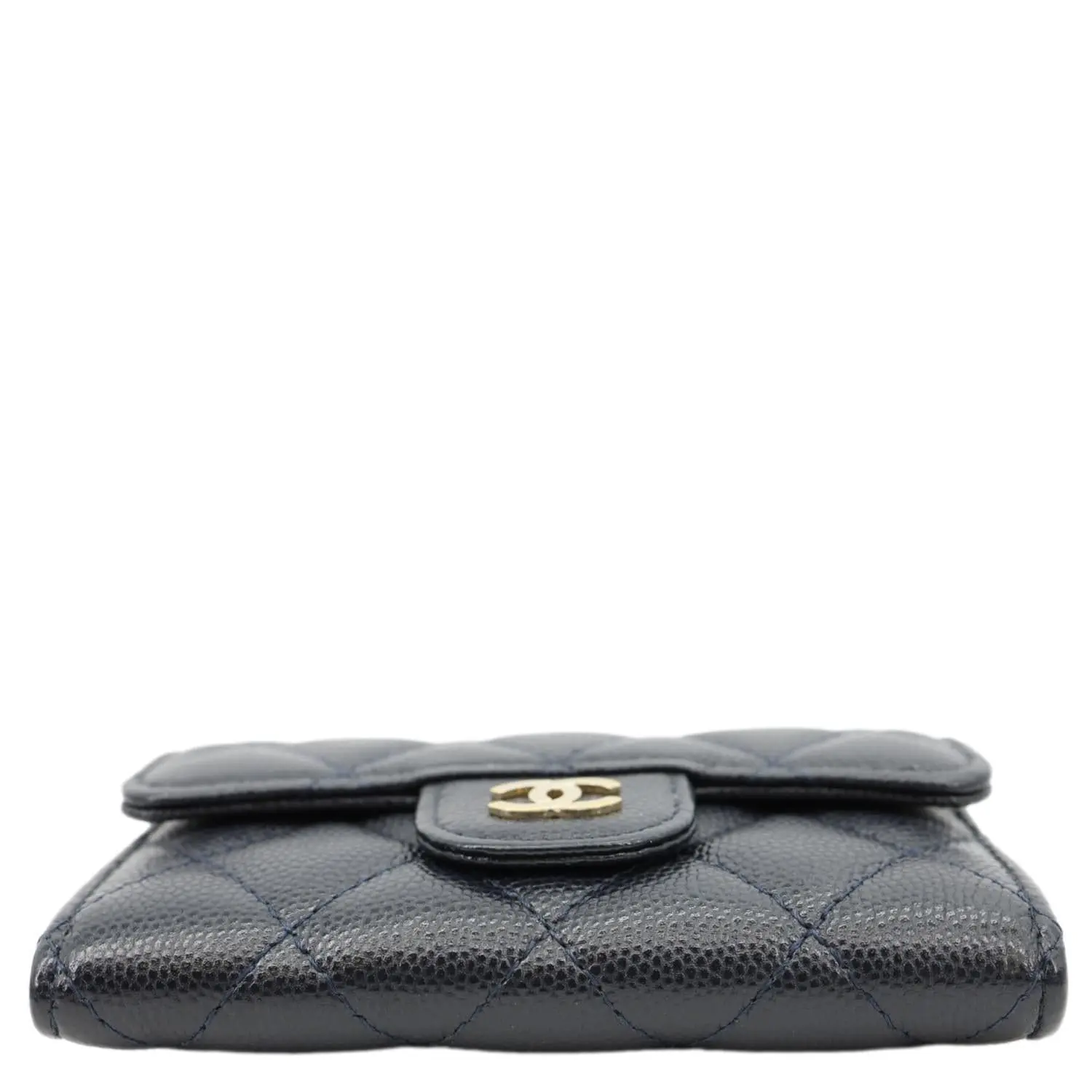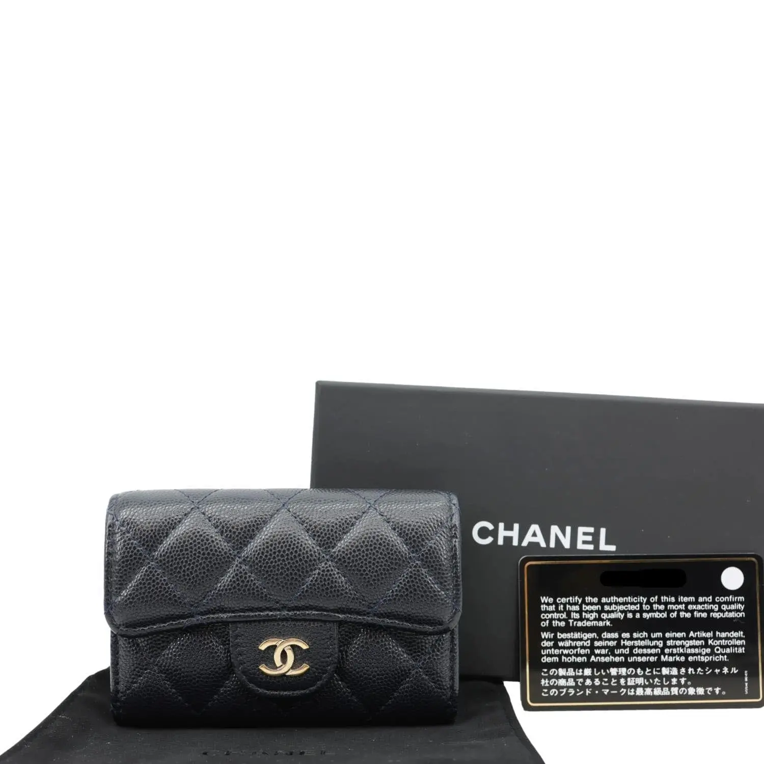 The Chanel Classic Flap Quilted Caviar Leather Card Holder Wallet in Black showcases the brand’s signature diamond quilting, featuring a CC logo snap closure. Crafted from durable caviar leather, it offers timeless elegance and compact practicality for daily essentials.