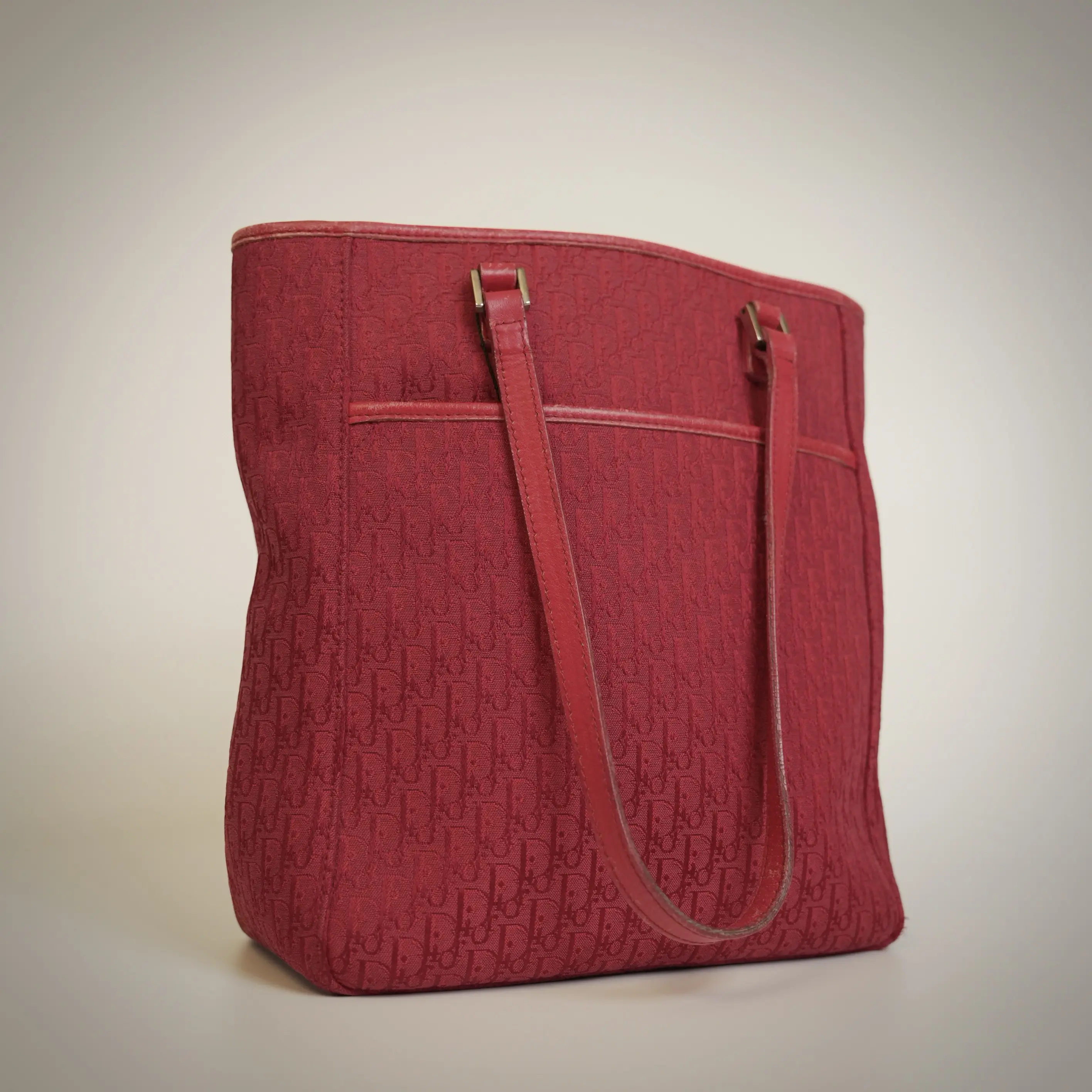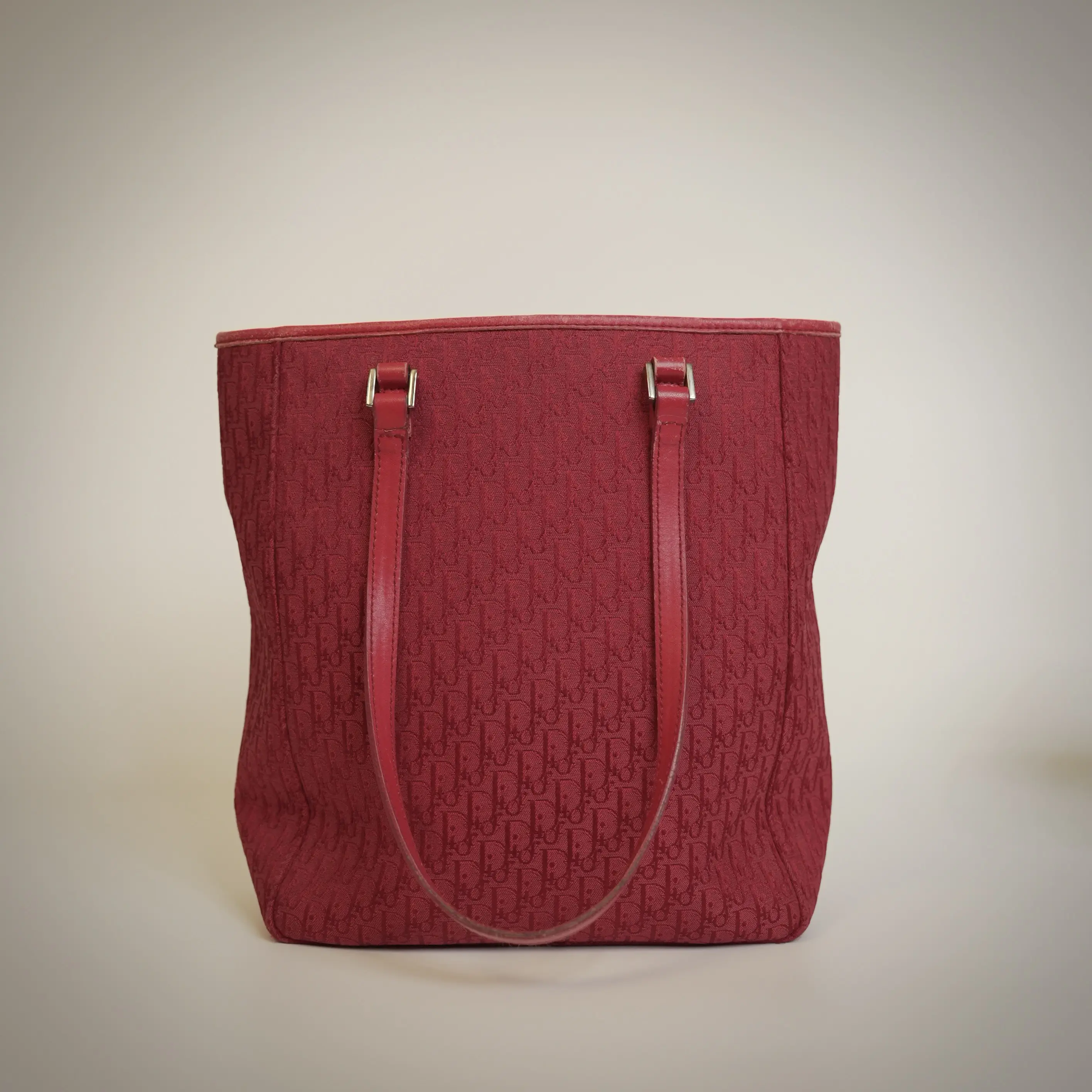 5. Pre-owned Dior Red Tote Bag with Monogram Design and Leather Handles for Everyday Use Elegant and Practical Choice