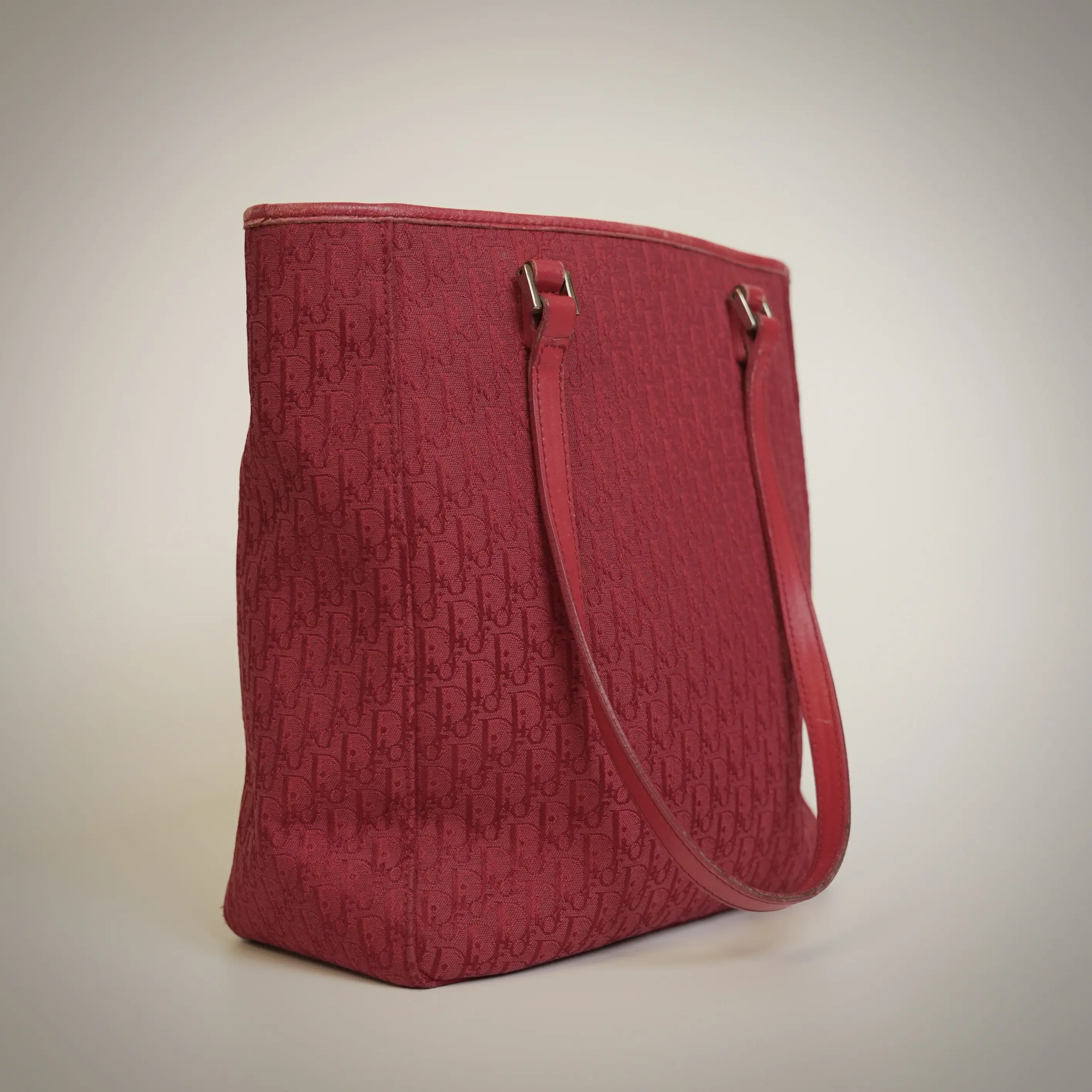 Pre-owned Dior Red Tote Bag with Monogram Design and Leather Handles for Everyday Use Elegant and Practical Choice