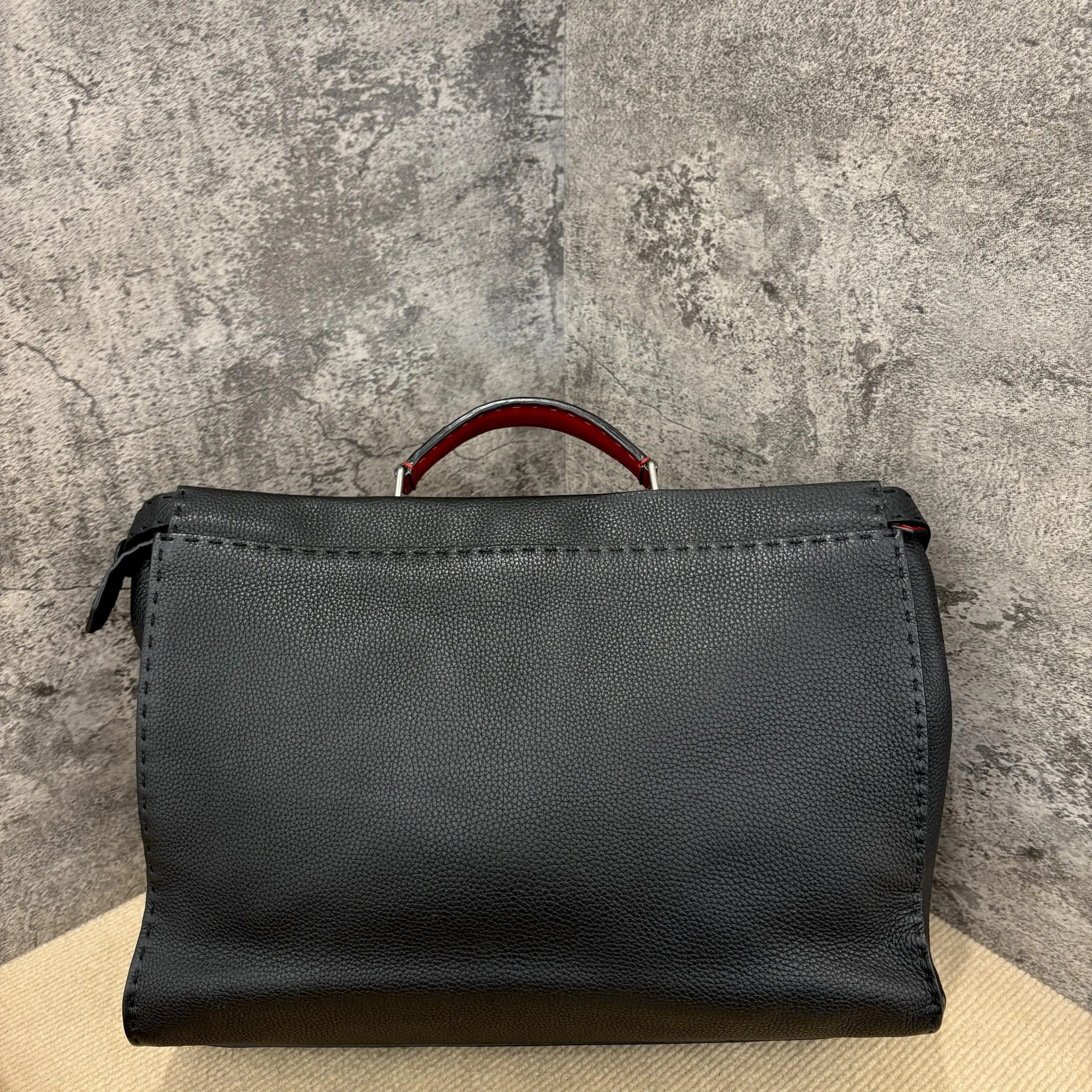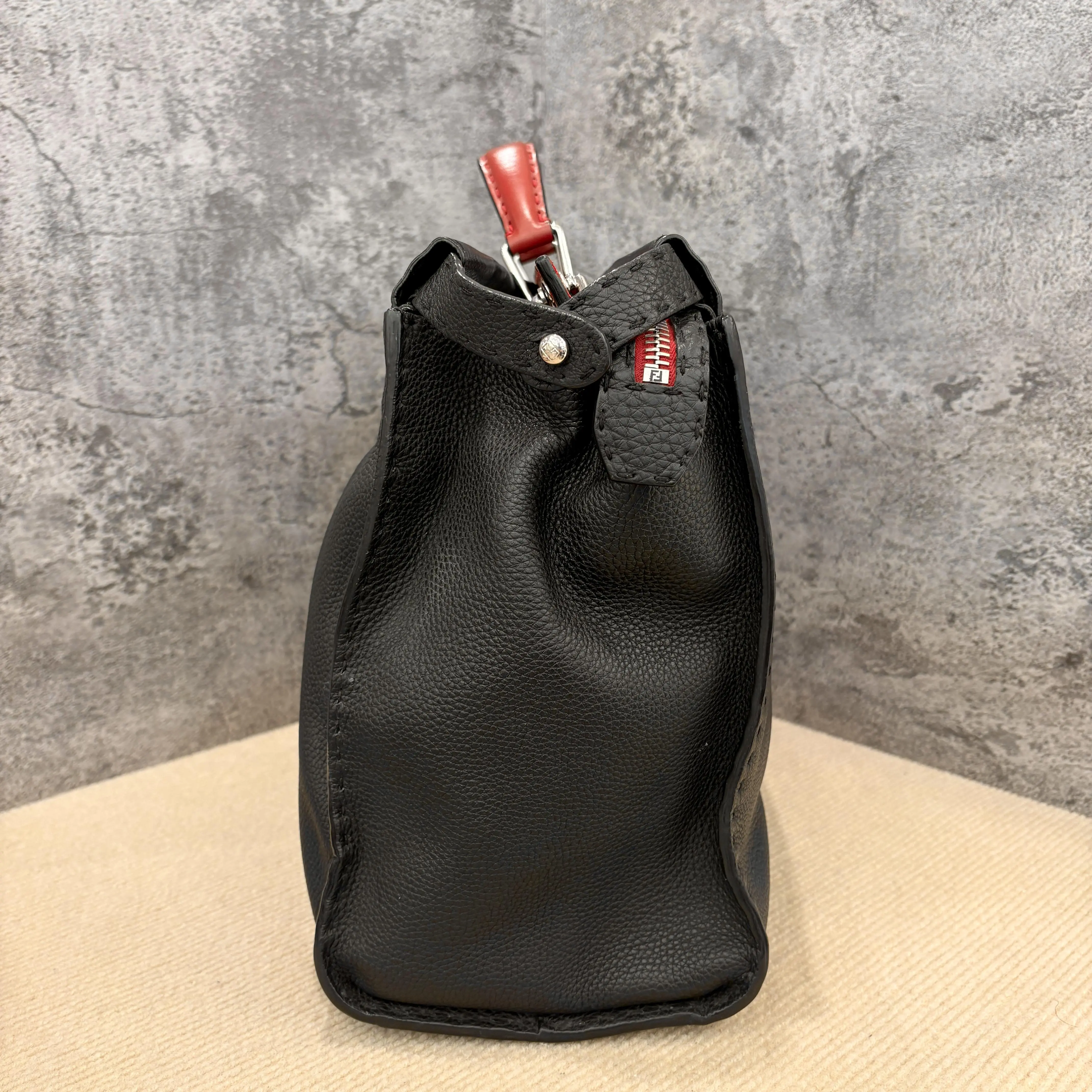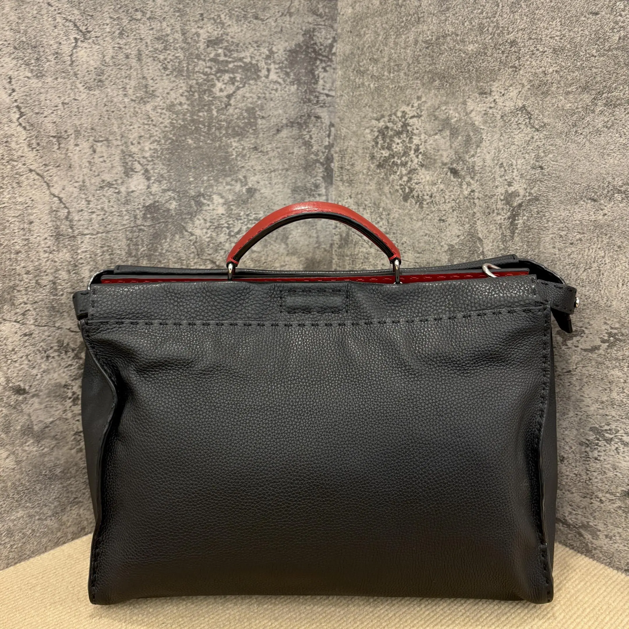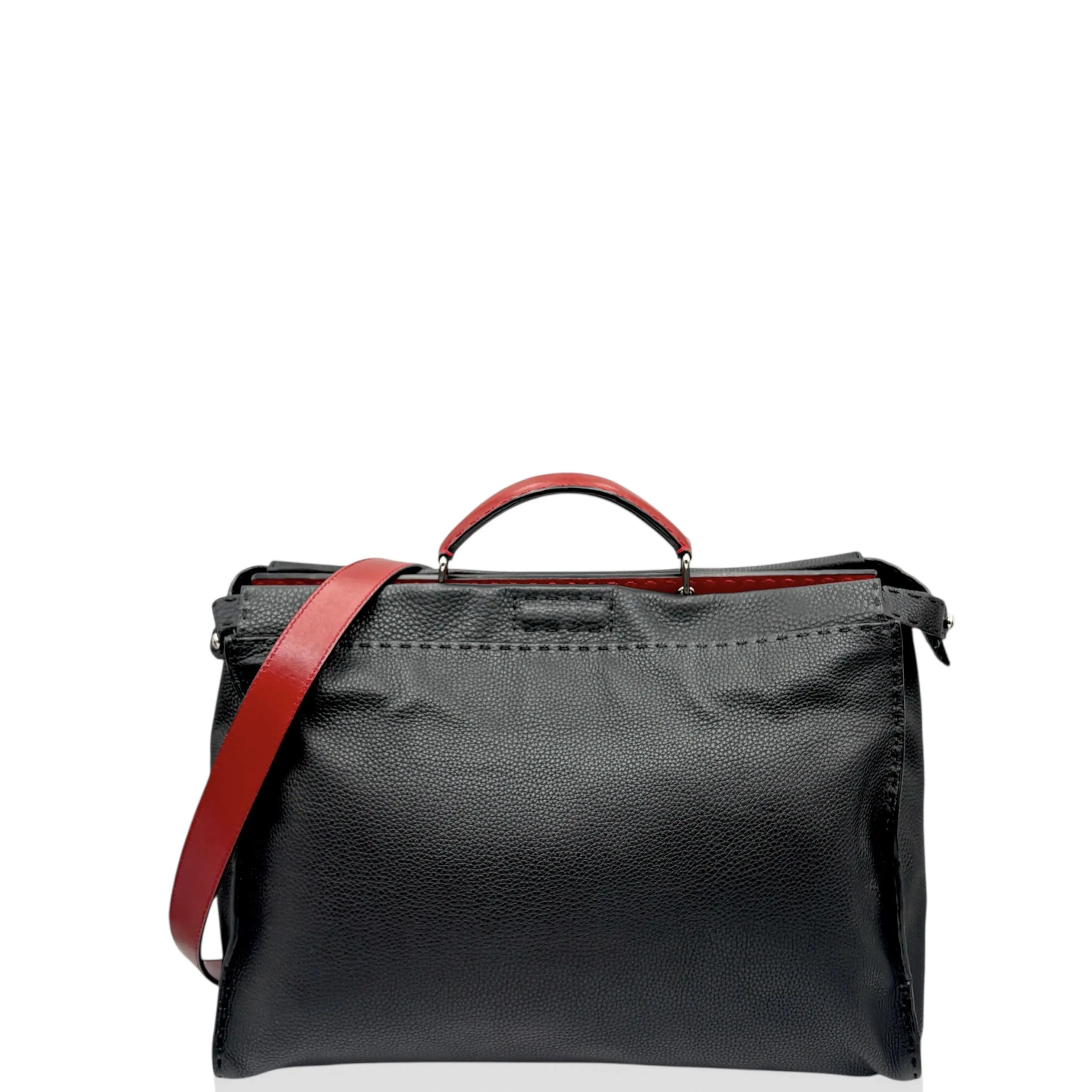 Pre-owned Fendi Peekaboo Fit Large Grained Calfskin Black (ym1119m8)