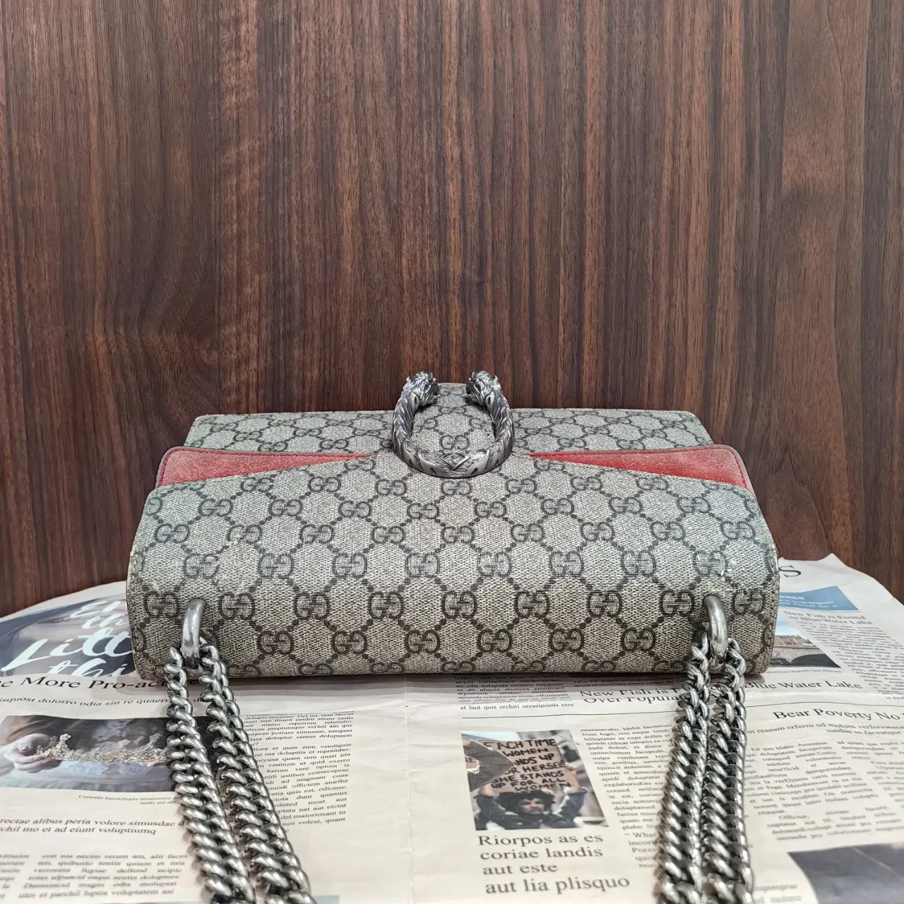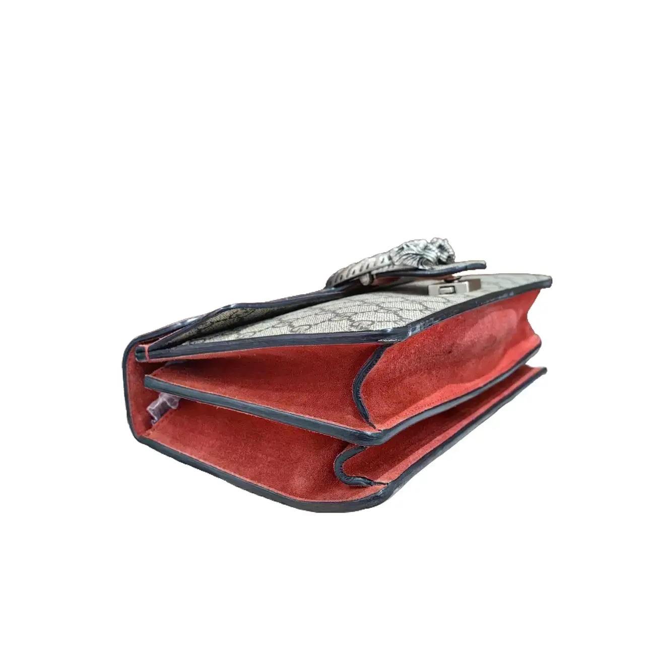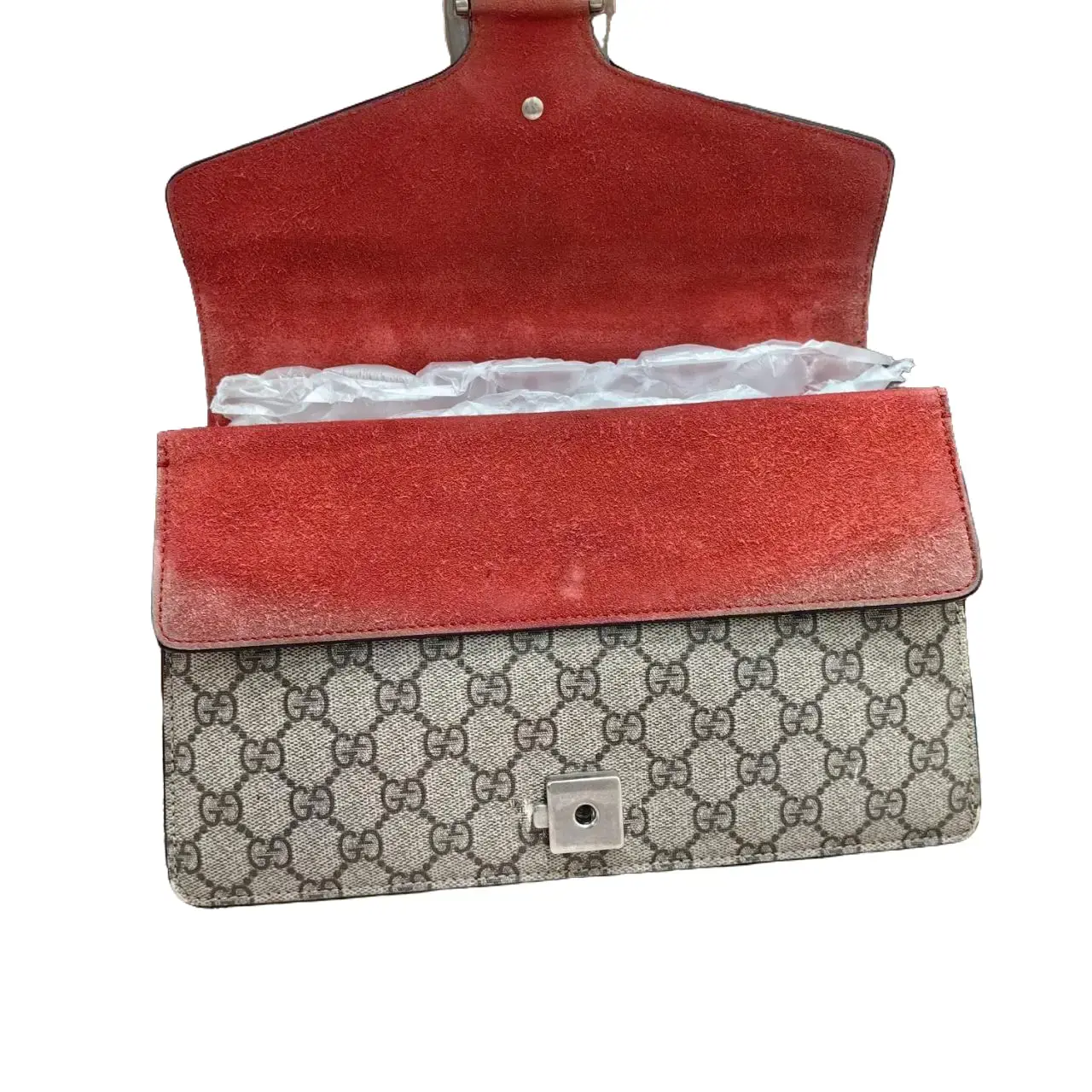 The handbag is equipped with silver hardware, ensuring durability and a sleek finish. The silver hardware complements the GG Supreme Canvas and red leather accents. This combination offers both style and functionality. Ideal for everyday use or special occasions. 🎨