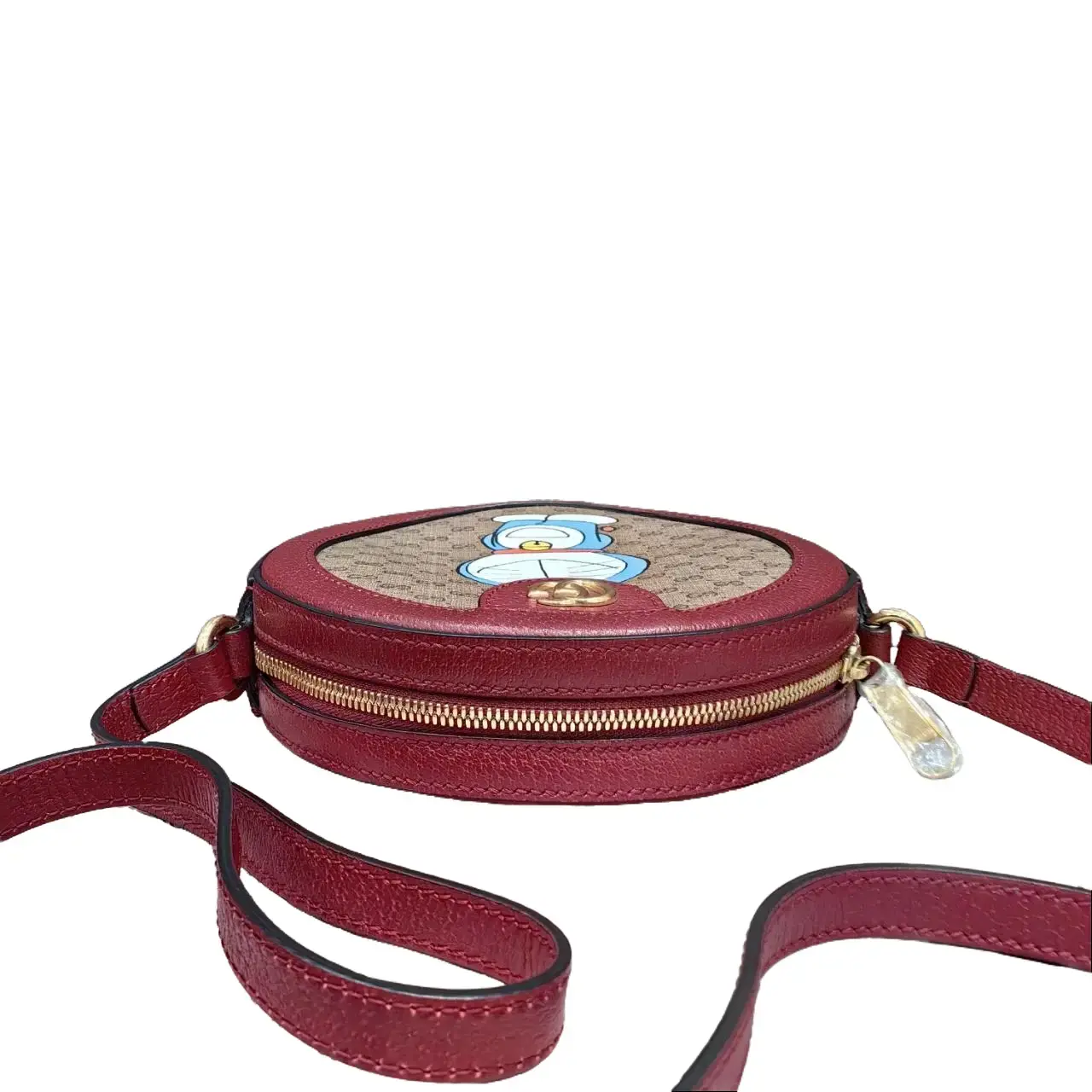 ✨ The Gucci Crossbody Bag features a Doraemon design, adding a playful touch to your look. Crafted from GG Supreme Fabric, this bag offers a blend of style and durability. The red leather strap enhances its aesthetic appeal, making it a versatile accessory for various occasions. Perfect for those who appreciate both fashion and functionality.