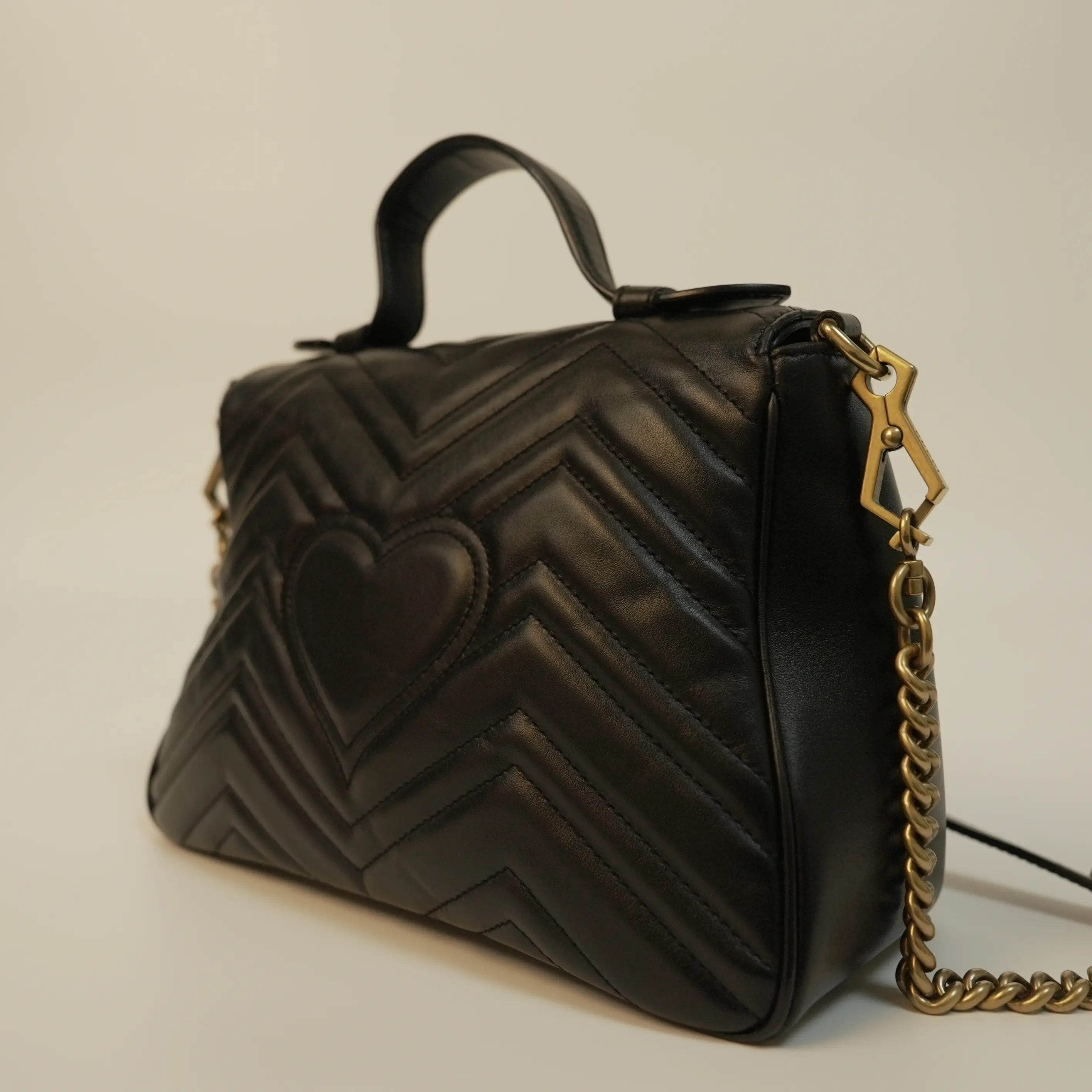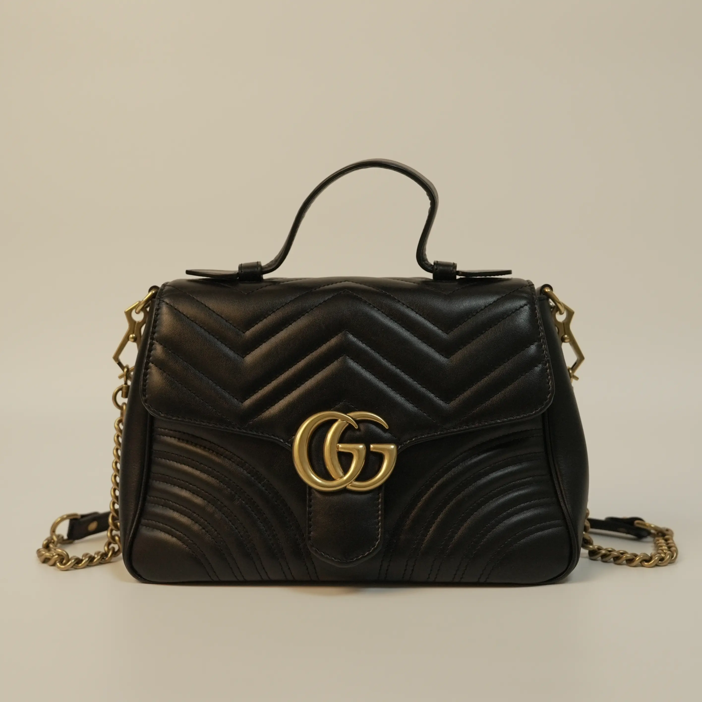 As a staple of Gucci’s Marmont collection, this black leather chain messenger bag is a symbol of timeless luxury and modern style. Its versatile design makes it suitable for any occasion — from daily commutes and shopping sprees to casual gatherings and date nights. Whether you’re a long-time Gucci enthusiast or looking to add an iconic luxury piece to your collection, this medium-sized, gold (gold hardware) messenger bag is a standout choice that elevates any look with effortless charm.