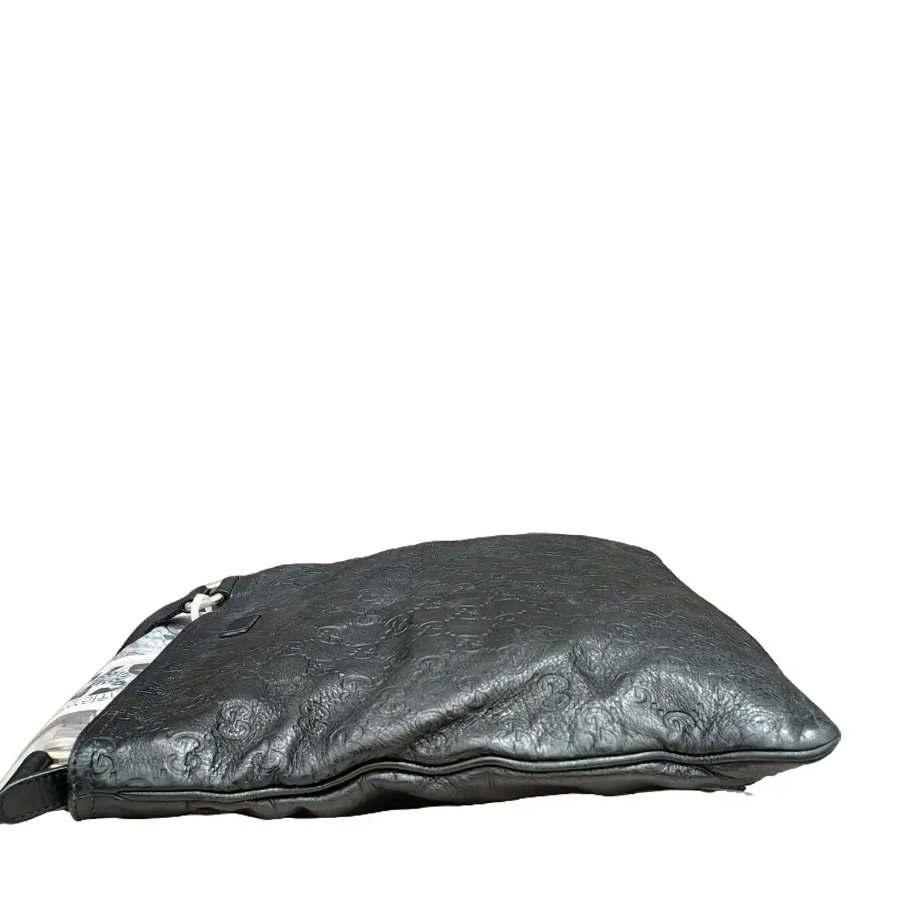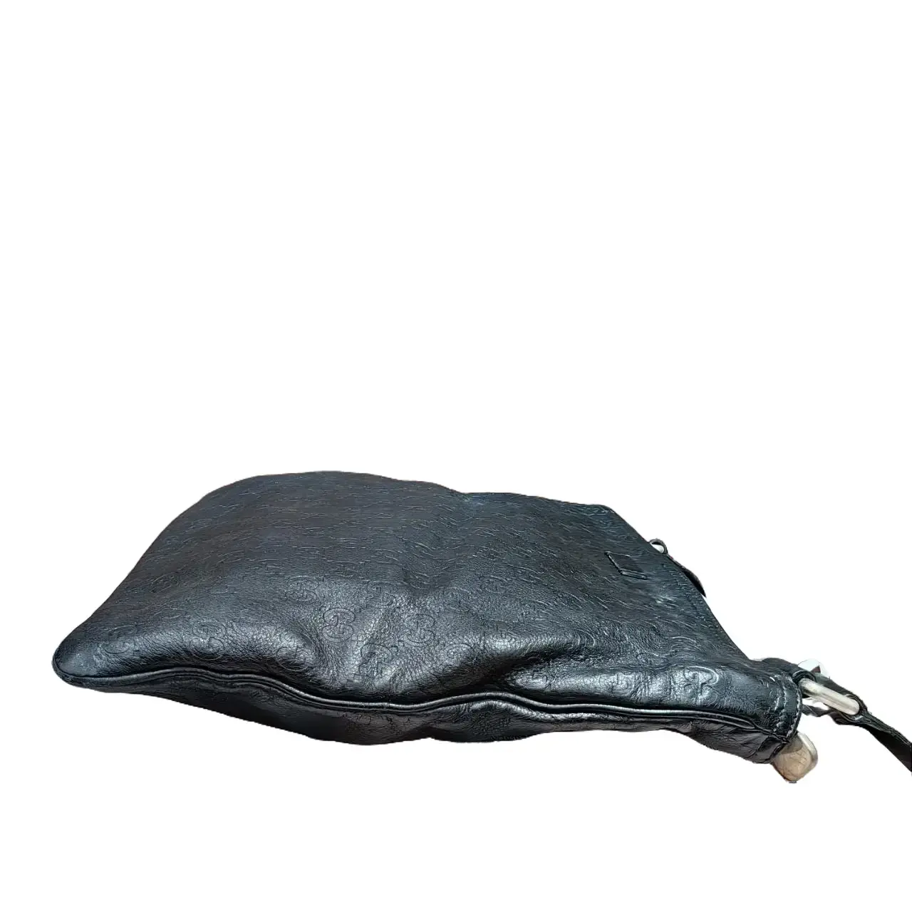 5. Pre-owned GUCCI Men's Messenger Bag Black Leather with Embossed Pattern & Adjustable Strap for Everyday Use